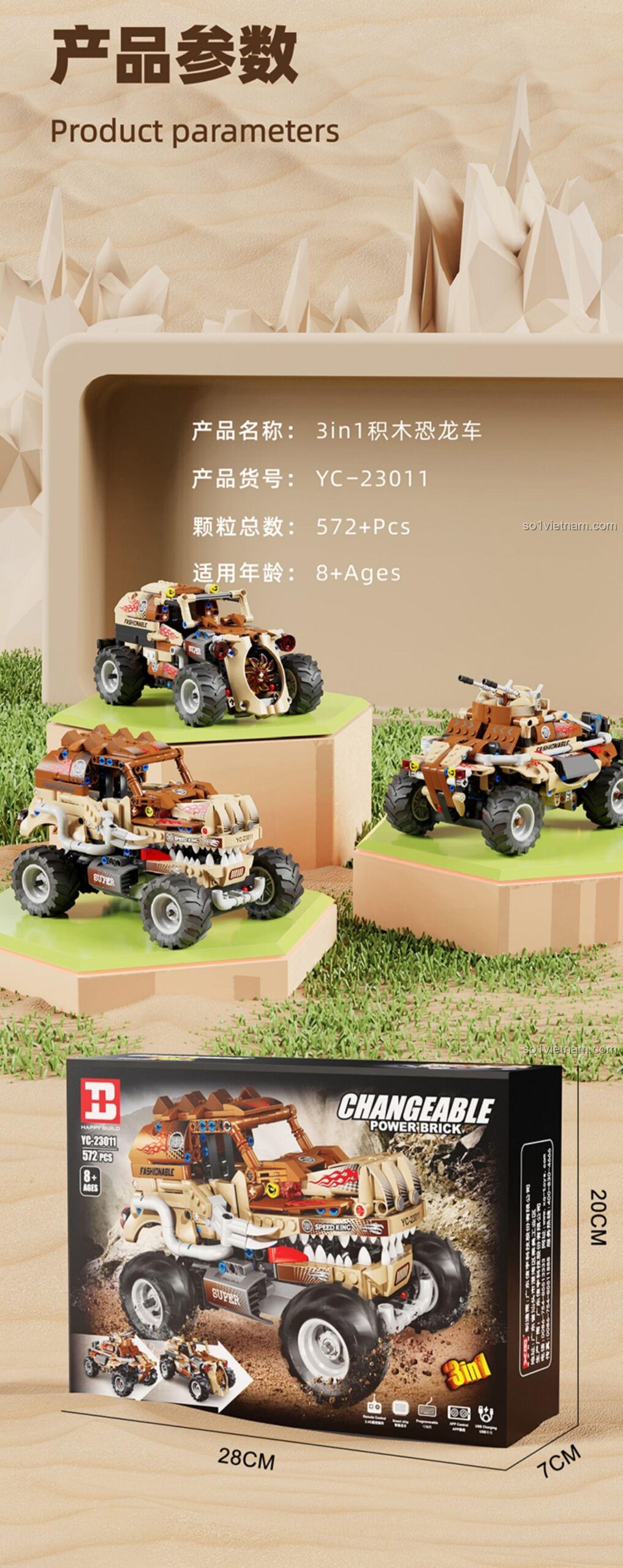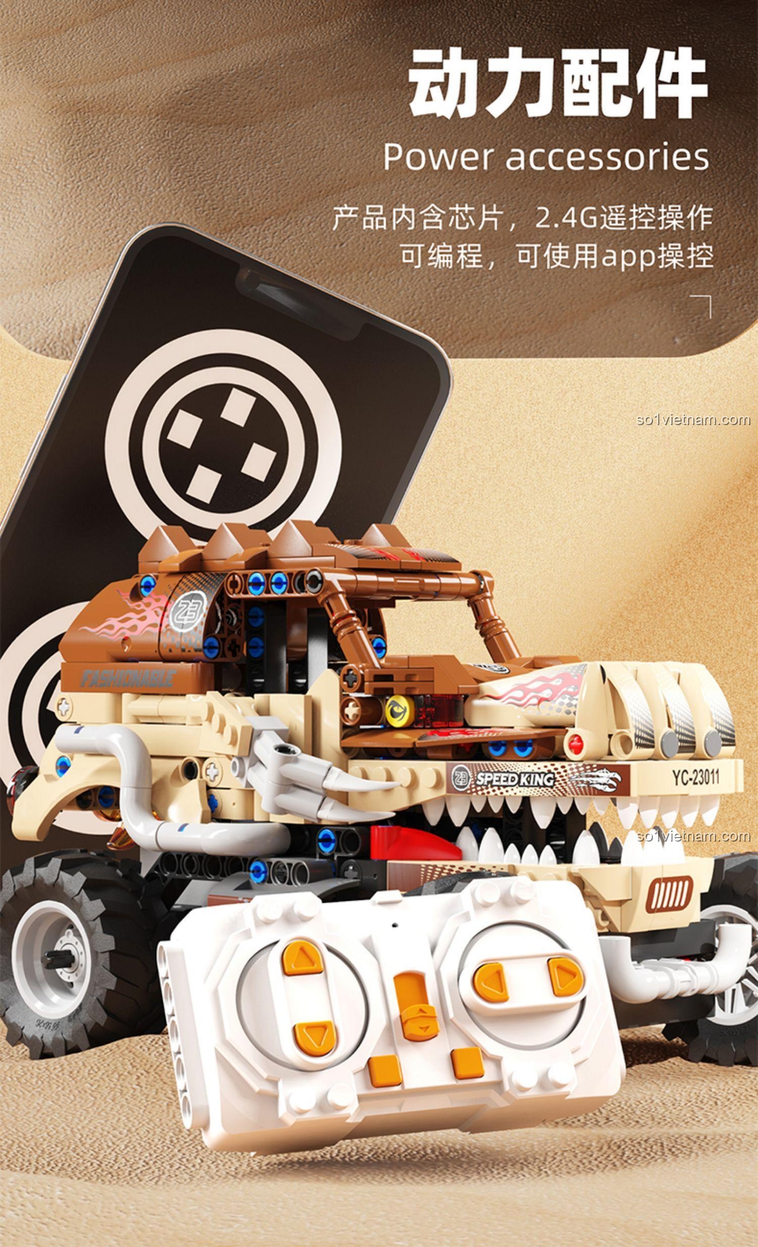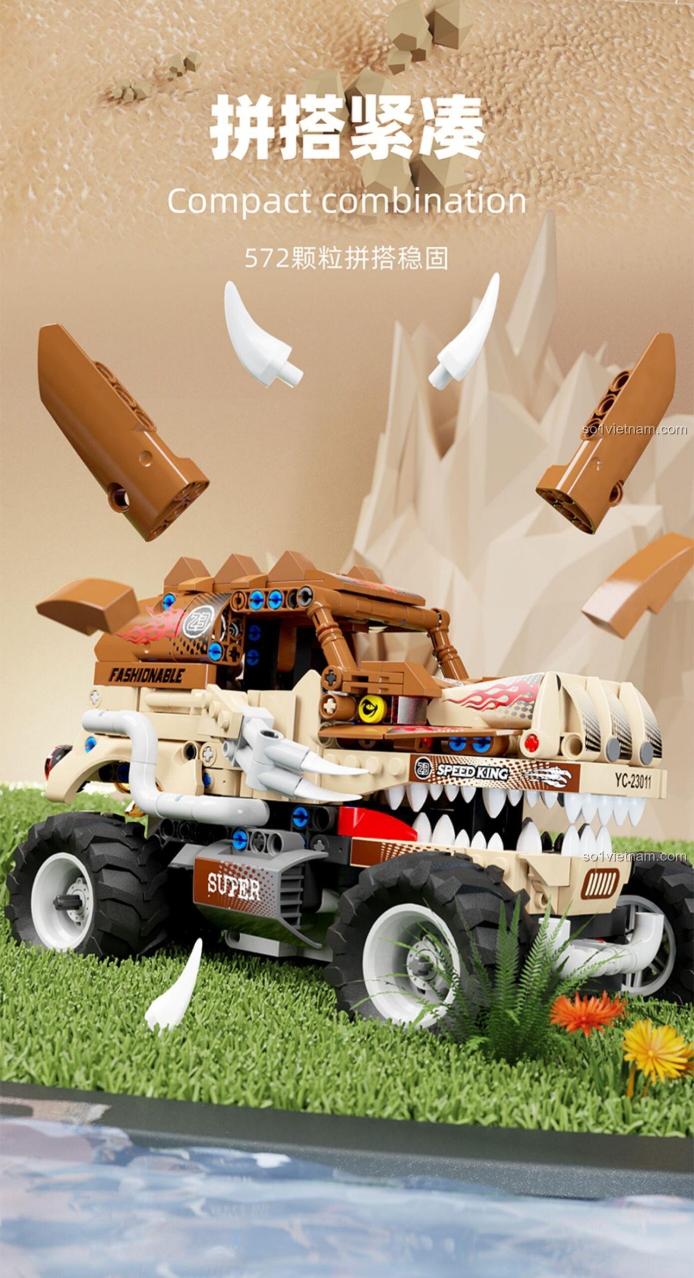 Quái Thú Biến Hình & Điều Khiển Từ Xa & Lập Trình Được: Khám Phá Ngay Happy Build YC-23011 Xe Địa Hình Khủng Long T-Rex (572 mảnh)