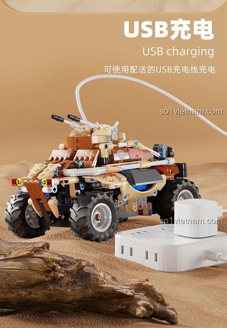 Xe sử dụng pin sạc qua cổng USB, thời gian sạc đầy khoảng 60-90 phút và có thể chơi liên tục trong khoảng 20-30 phút tùy thuộc vào địa hình và cách bé điều khiển. Việc dùng pin sạc rất tiện lợi và tiết kiệm.