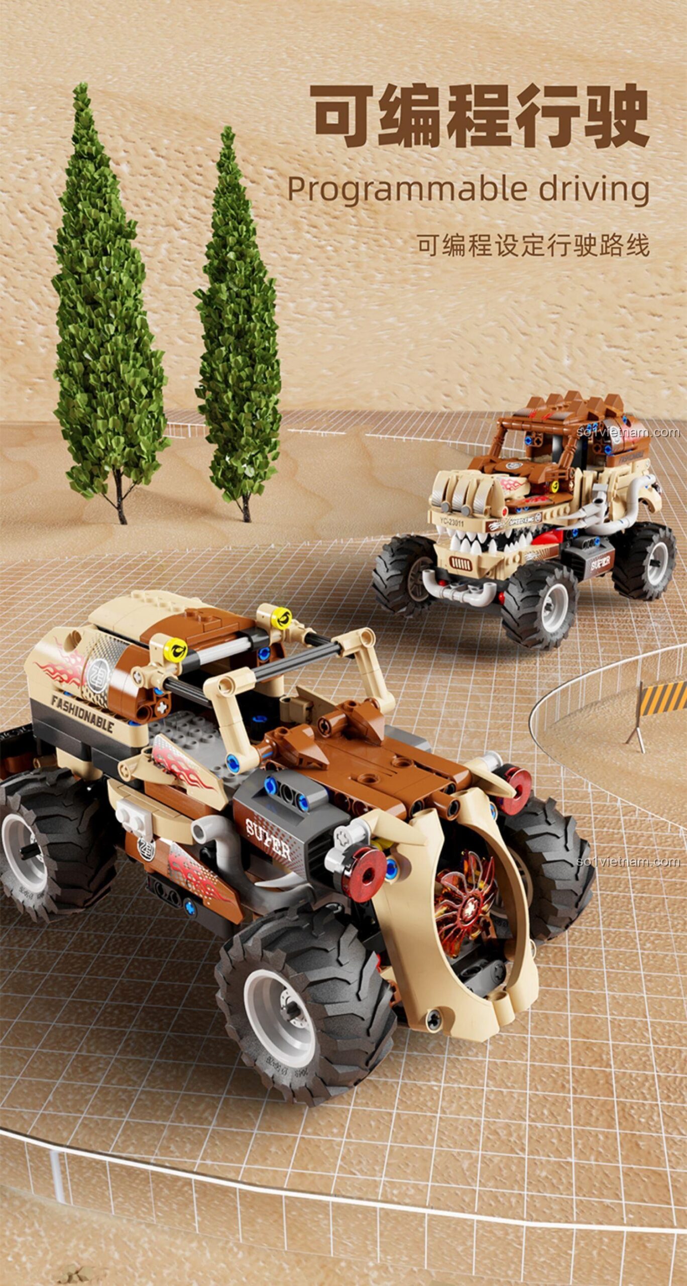 Điểm đặc biệt nhất? Đây không chỉ là mô hình tĩnh! Sản phẩm được trang bị động cơ mạnh mẽ, cho phép điều khiển từ xa qua tay cầm 2.4G hoặc ứng dụng trên điện thoại. Hơn thế nữa, bé còn có thể hóa thân thành một kỹ sư nhí khi tự mình lập trình đường đi cho xe, một bước khởi đầu tuyệt vời vào thế giới STEM. Chất lượng tương đương LEGO® Technic nhưng với mức giá siêu tiết kiệm, đây chính là món quà hoàn hảo giúp bé phát triển tư duy logic, kỹ năng giải quyết vấn đề và thỏa sức tưởng tượng.