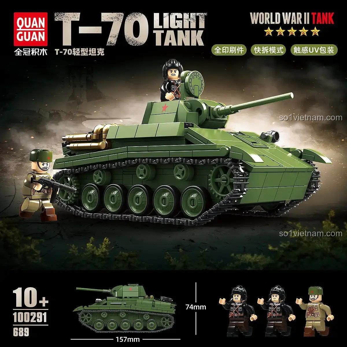 QUAN GUAN 100291 Xe Tăng Hạng Nhẹ T-70 (689 Mảnh) – Mô Hình Quân Sự Chi Tiết