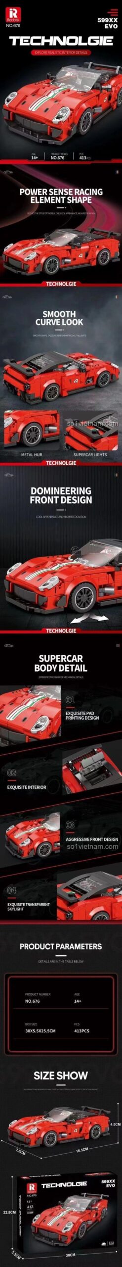 🧠 Học Mà Chơi, Chơi Mà Học Cùng Bộ xếp hình Siêu xe Ferrari 599XX Evo 676