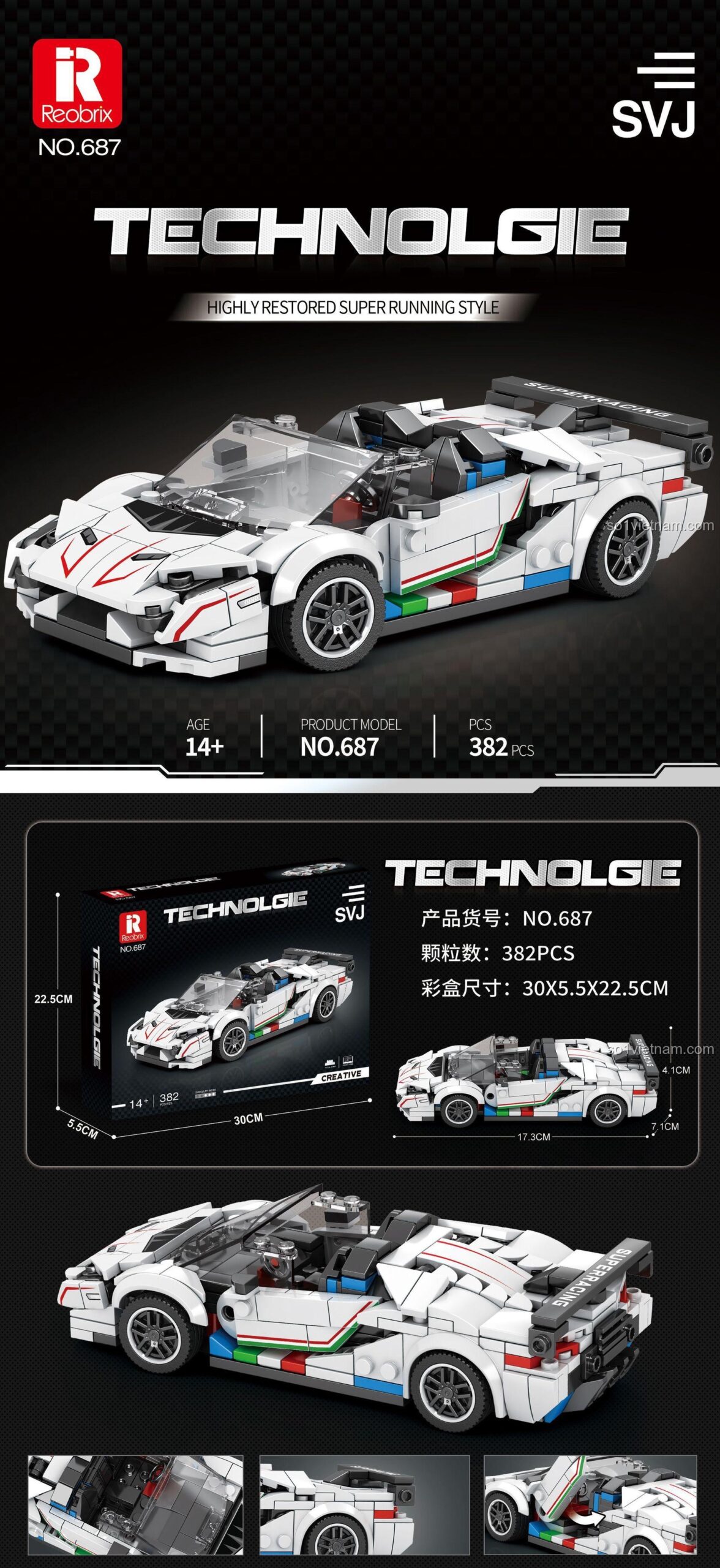 Reobrix 687: Siêu xe Lamborghini Aventador SVJ Tái Hiện Tinh Xảo (382 Mảnh)