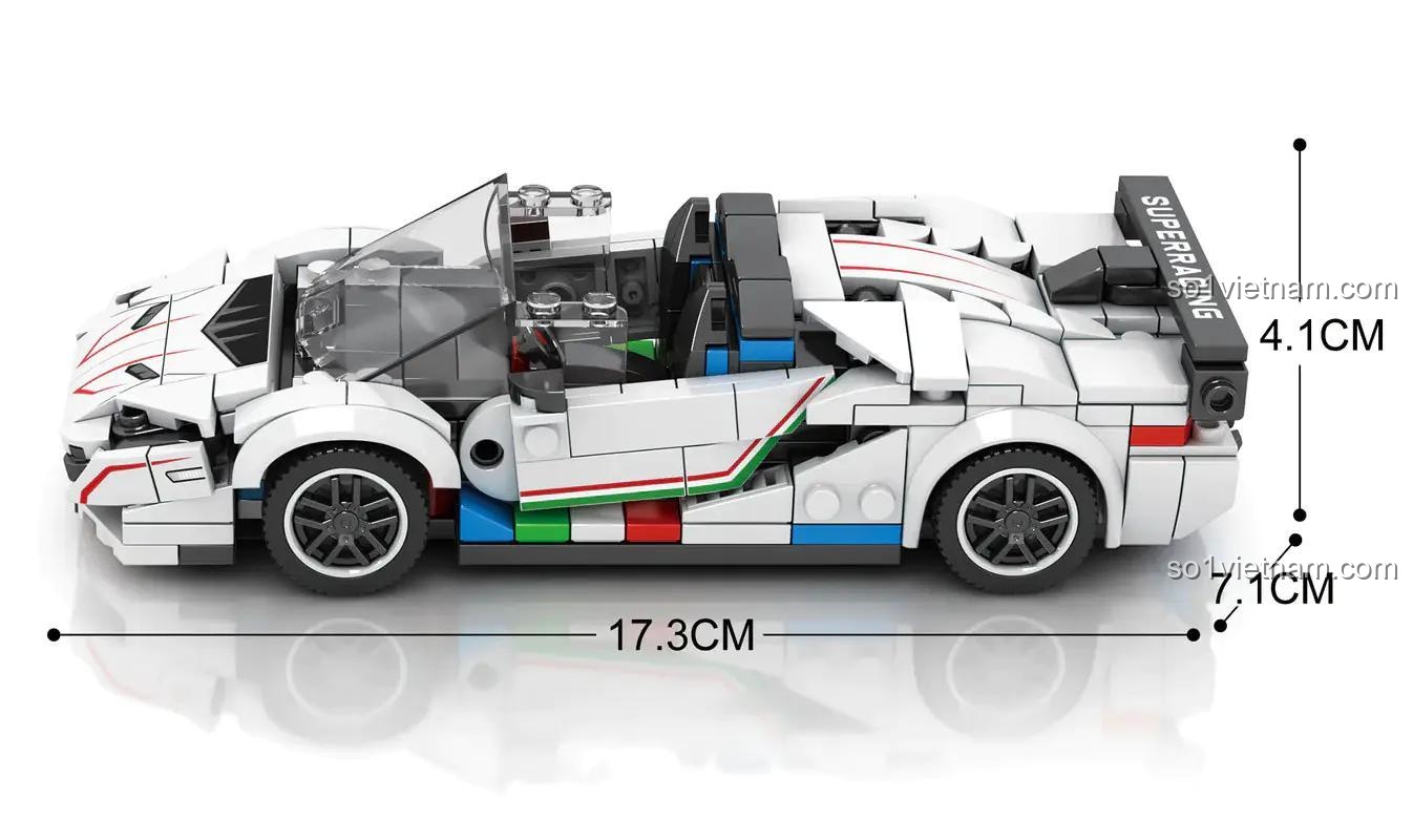 • Kích thước mô hình (sau lắp ráp): Dài 17.3cm x Rộng 7.1cm x Cao 4.1cm