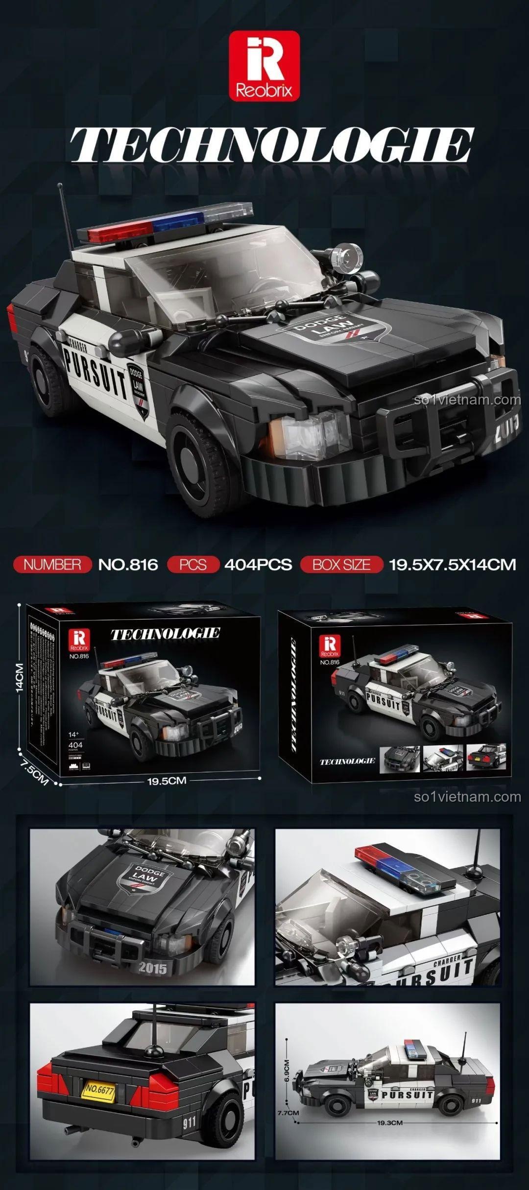 Reobrix 816 – Đồ chơi mô hình Xe Cảnh Sát Dodge Charger Pursuit Với Mô hình xe cảnh sát Mỹ chi tiết Độc Đáo