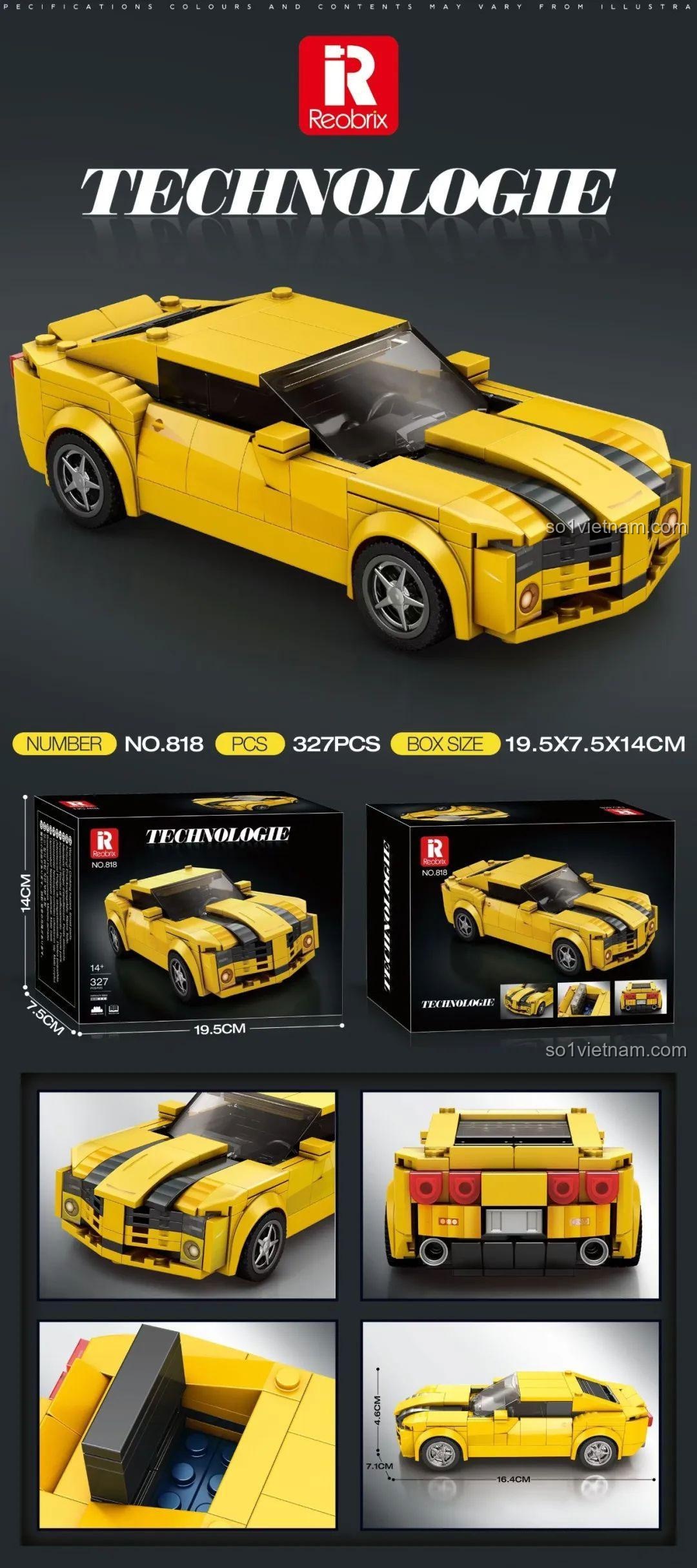 Kích thước của Reobrix 818 Xe cơ bắp Mỹ Chevrolet Camaro sau khi hoàn thành là bao nhiêu?