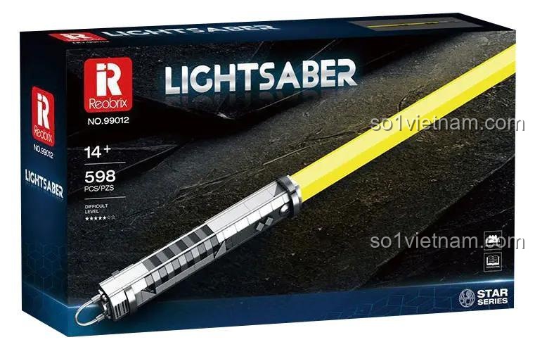 Bộ lắp ghép Reobrix 99012 Lightsaber được thiết kế để lắp ráp thành một mẫu duy nhất là thanh kiếm ánh sáng vàng.