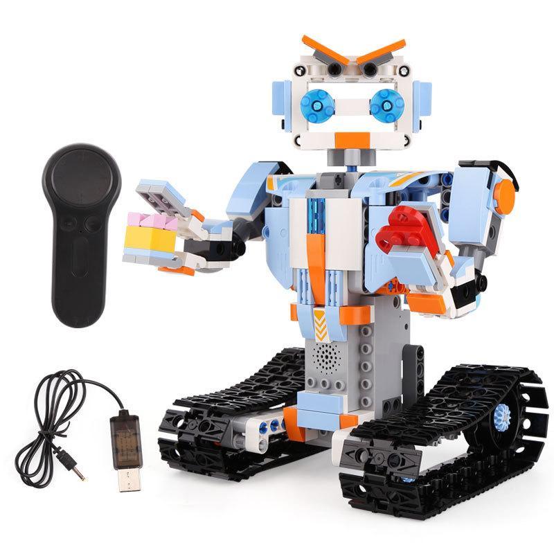 Robot Thông Minh M4 nổi bật với thiết kế hiện đại, kết hợp gam màu xanh dương, trắng và cam bắt mắt, tạo nên vẻ ngoài năng động và thu hút. Các chi tiết được chế tác tỉ mỉ, đảm bảo độ khít cao, giúp bé dễ dàng lắp ráp và tạo hình. Chú robot được trang bị hệ thống bánh xích chắc chắn, cho phép di chuyển linh hoạt trên nhiều địa hình. Phần đầu robot với đôi mắt xanh tròn và “lông mày” cam tạo điểm nhấn biểu cảm, mang lại cảm giác sống động.