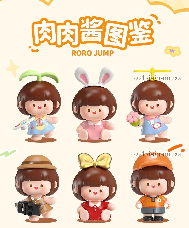 Bộ sưu tập ROROJUMP bao gồm 6 mẫu nhân vật khác nhau, mỗi mẫu là một bất ngờ trong chiếc blind box.