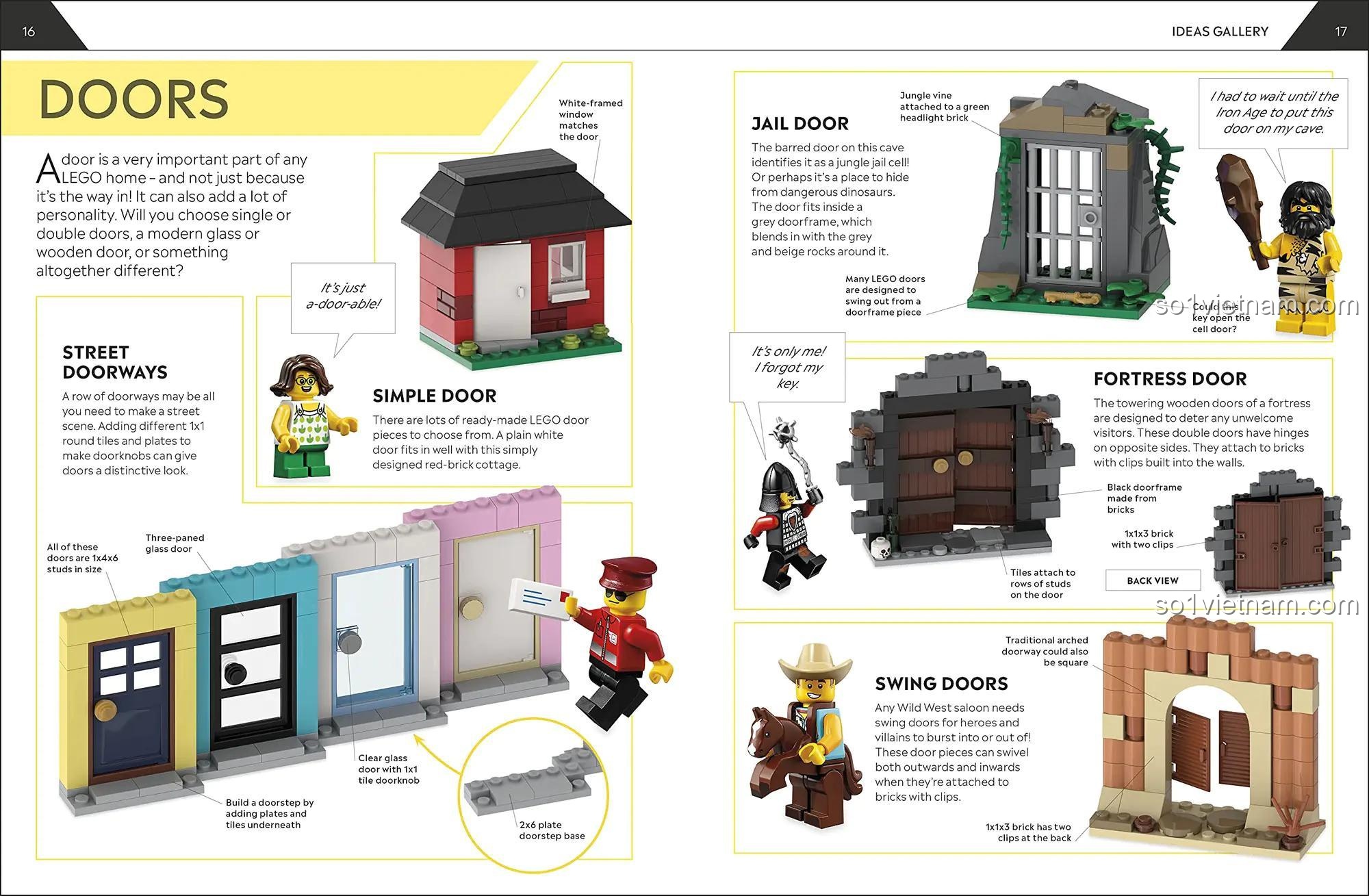 Cuốn sách này không chỉ đơn thuần là một tập hợp các hình ảnh đẹp mắt. Nó là một cẩm nang “Hướng Dẫn Chi Tiết” từng bước, từ cách xây dựng nền móng vững chắc, lắp đặt cửa ra vào (Doors) và cửa sổ (Windows) với nhiều kiểu dáng khác nhau, cho đến việc tạo mái nhà và các chi tiết trang trí nhỏ. Bé sẽ học được các kỹ thuật xây dựng cơ bản nhưng vô cùng quan trọng, giúp các em tự tin hơn khi đối mặt với những thử thách lắp ráp phức tạp hơn trong tương lai.