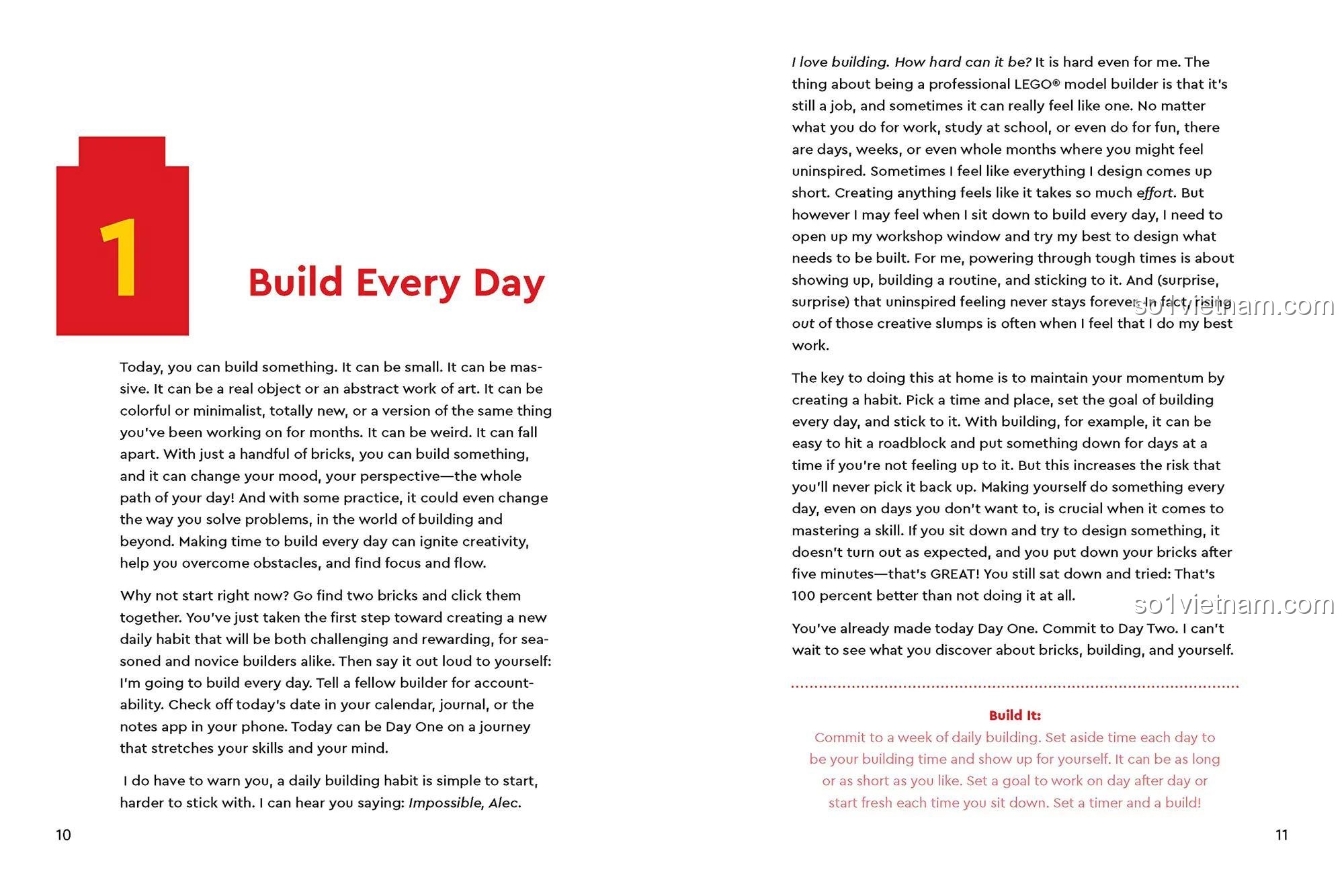 Để tận dụng tối đa cuốn đồ chơi giáo dục Build Every Day này, hãy đọc từng chương nhỏ và thực hành ngay các gợi ý xây dựng. Đừng ngại thử nghiệm với những viên gạch bạn đã có, kết hợp các ý tưởng và tạo ra những mô hình độc đáo của riêng mình. Quan trọng nhất là hãy xây dựng mỗi ngày, dù chỉ là một mô hình nhỏ, để duy trì và phát triển thói quen sáng tạo. Cuốn sách này sẽ là người bạn đồng hành lý tưởng trên hành trình đó.