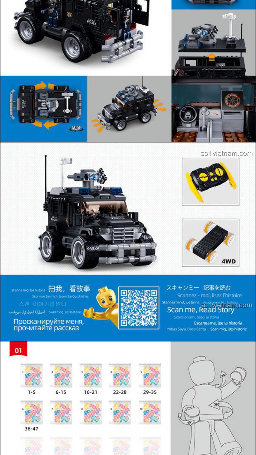 Xem video hướng dẫn lắp ráp miễn phí trước khi tải về để có cái nhìn tổng quan về sản phẩm Xe Cảnh Sát Đặc Nhiệm 1156.