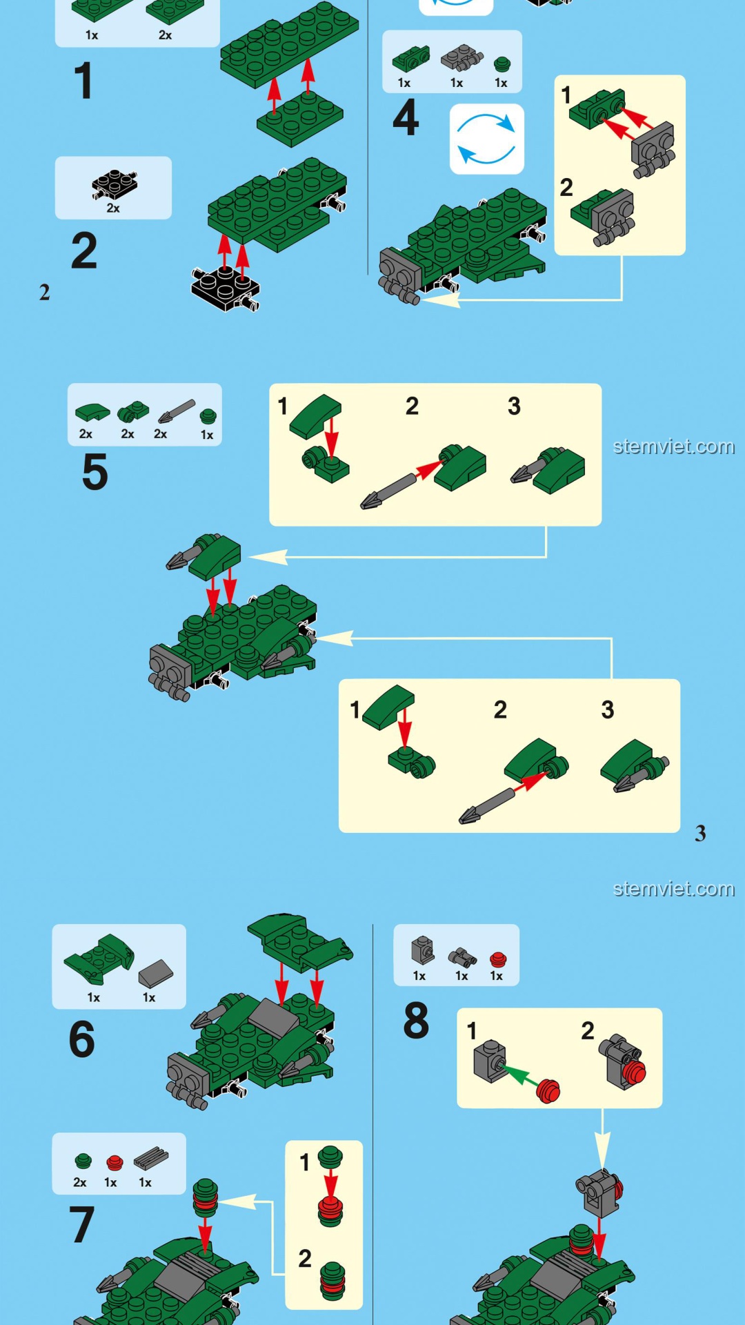 Sách Hướng Dẫn Lắp Ráp DECOOL 31002 Bộ Lắp Ráp Đa Năng Biến Hình 8 Kiểu: Hải, Lục, Không PDF gốc chất lượng cao