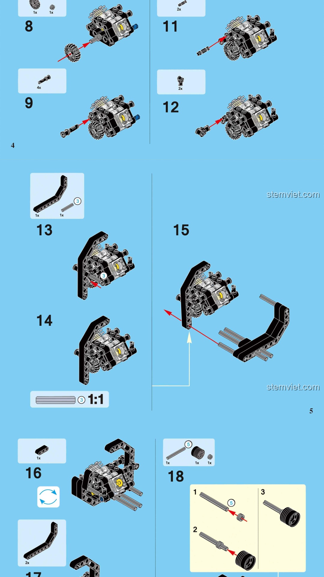 • Zoom Chi Tiết Từng Bước: Dễ dàng quan sát và thực hiện theo, ngay cả với những chi tiết nhỏ nhất của Mô hình xe máy Technic.