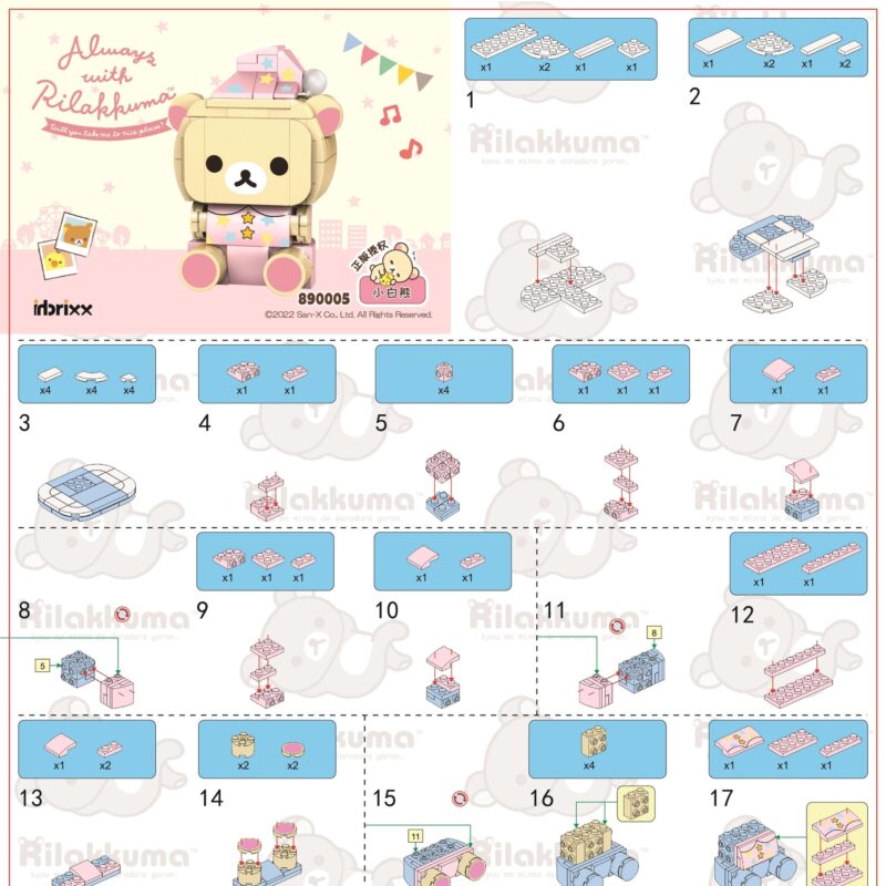 Sách Hướng Dẫn Lắp Ráp inbrixx 890005 Gấu Trắng Korilakkuma Hồng PDF Gốc Chất Lượng Cao
