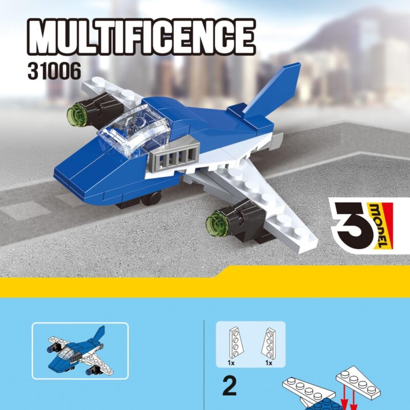 Tải sách hướng dẫn lắp ráp Máy Bay Chiến Đấu Biến Hình 3-in-1 Decool 31006 PDF gốc chất lượng cao. Giải pháp tối ưu khi thiếu hướng dẫn, zoom chi tiết, in ấn rõ nét. Hỗ trợ lắp ghép mô hình máy bay chiến đấu đa năng.