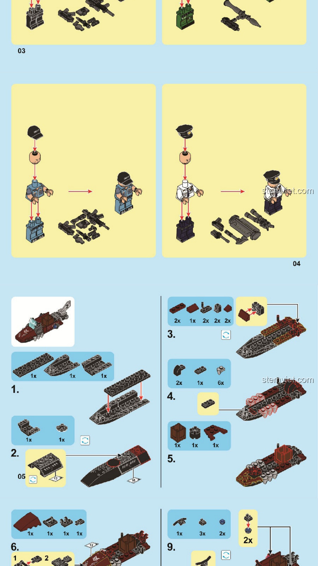 Sách Hướng Dẫn Lắp Ráp SEMBO 102467 Tàu Tuần Tra Đặc Nhiệm SWAT Hắc Ưng PDF Gốc Chất Lượng Cao