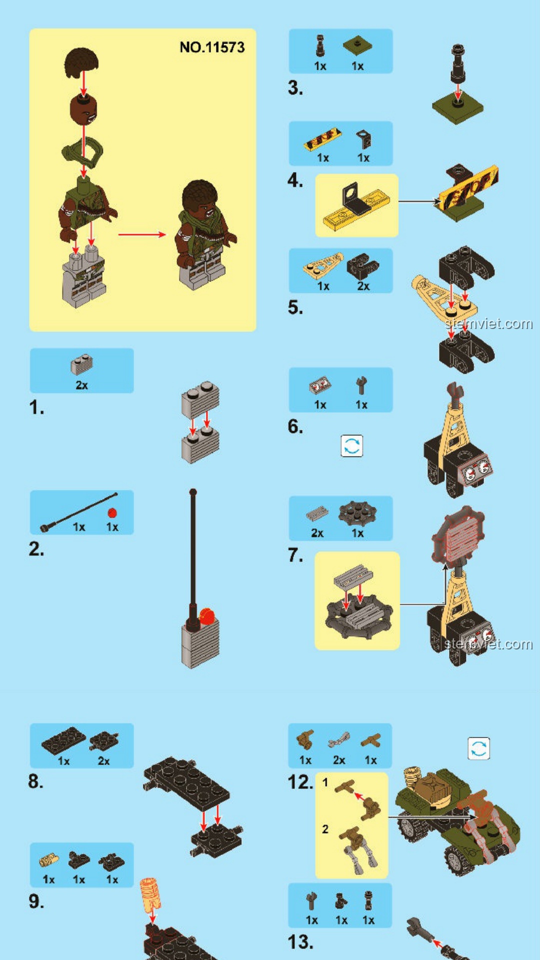 Sách Hướng Dẫn Lắp Ráp SEMBO 11573 Bộ Lắp Ráp Quân Sự Black Gold Project 8 Cảnh Mini PDF gốc chất lượng cao