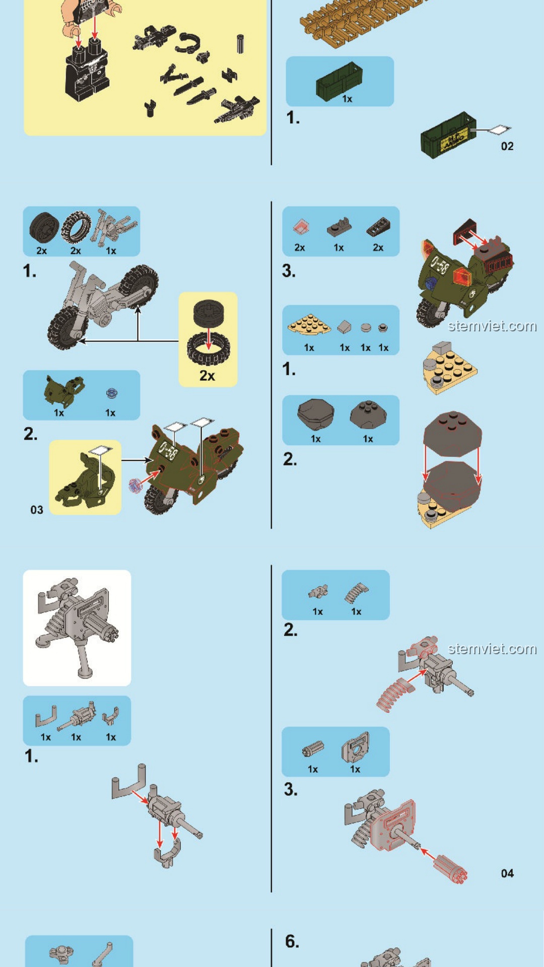 Khám phá thế giới lắp ráp mô hình quân sự với SÁCH HƯỚNG DẪN LẮP RÁP SEMBO 11707 Kế Hoạch Vàng Đen: Cuộc Chiến Bảo Vệ Tài Nguyên. Sản phẩm tải xuống này cung cấp file PDF gốc chất lượng cao từ nhà sản xuất, cho phép bạn zoom chi tiết từng bước và in ấn rõ nét. Đây là giải pháp hoàn hảo cho những ai bị mất hoặc hỏng hướng dẫn lắp ráp các bộ mô hình SEMBO như Sa bàn quân sự, Trận địa phòng thủ, Tiền đồn quân sự, Tháp canh và ụ súng máy, Chốt canh gác quân sự, Căn cứ quân sự mini. Sở hữu ngay bộ lắp ráp SEMBO 11707 chất lượng cao giá tốt, mang đến trải nghiệm lắp ráp thú vị và tiết kiệm cho con trai bạn trên 6 tuổi.