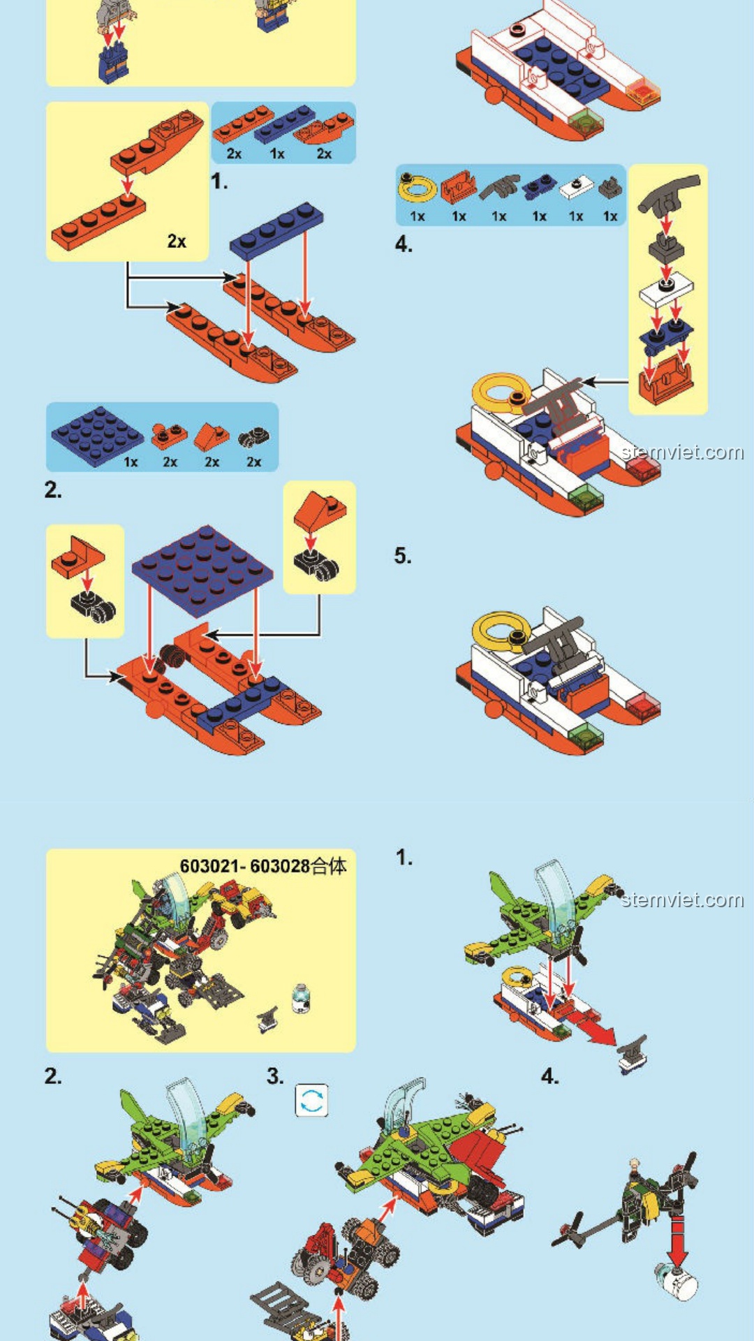 Sở hữu Sách Hướng Dẫn Lắp Ráp SEMBO 603028 Đội Cứu Hộ Ngày Tận Thế PDF Gốc Chất Lượng Cao. Hướng dẫn chi tiết, zoom rõ nét cho Robot Hợp Thể Cứu Hộ, Xe Cứu Hỏa, Máy Bay Cứu Hộ, Thuyền Cứu Hộ.
