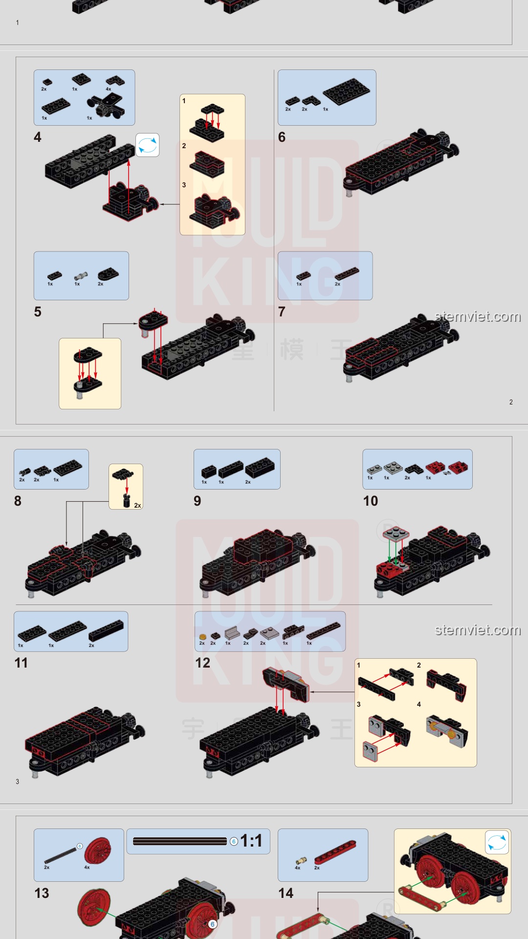 Sách Mould King 12004 Tàu Hỏa Mộng Mơ MKingLand PDF Gốc Chất Lượng Cao, Hướng Dẫn Lắp Ghép Mould King 12004 Đoàn Tàu Hơi Nước Cổ Điển