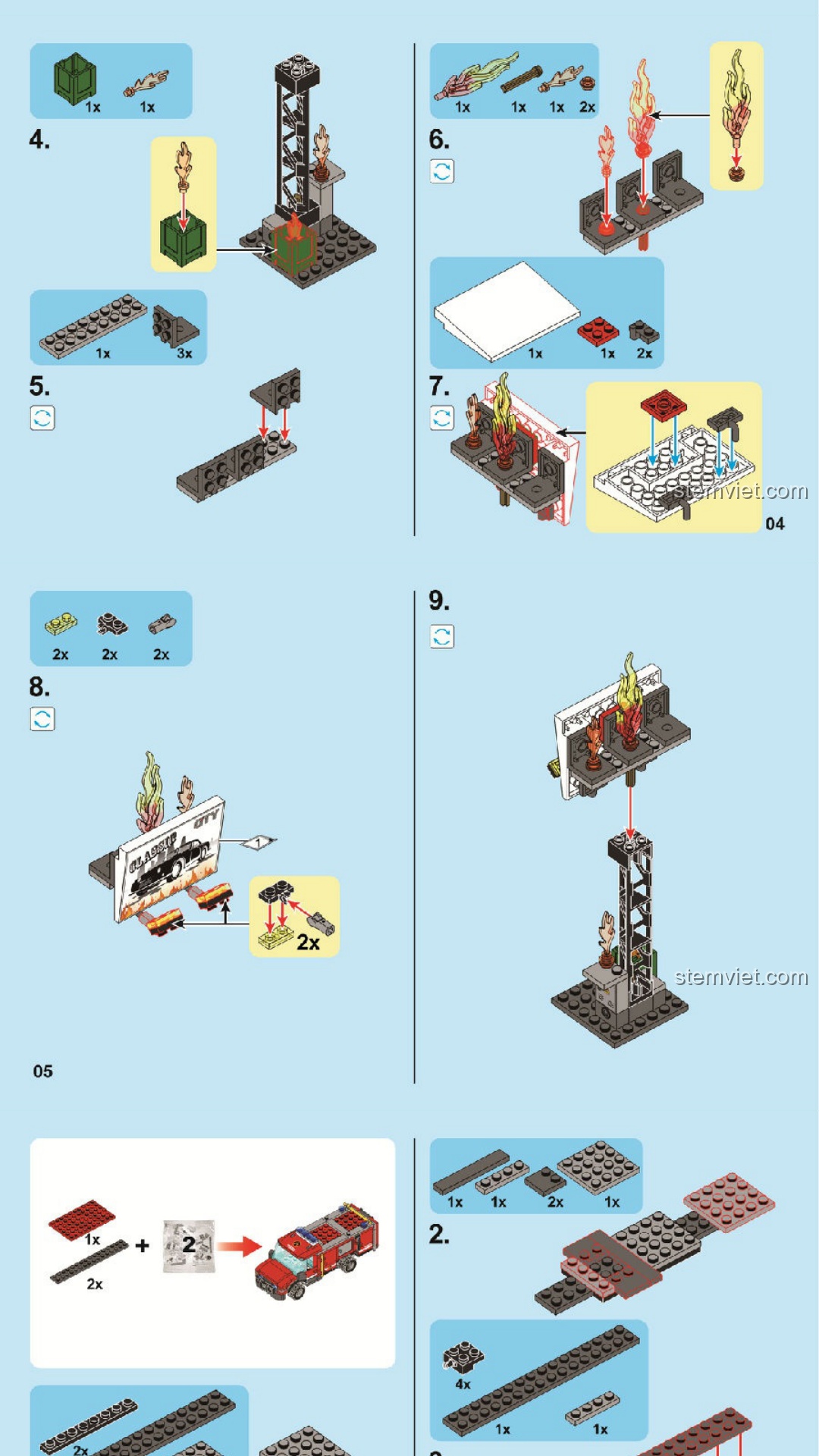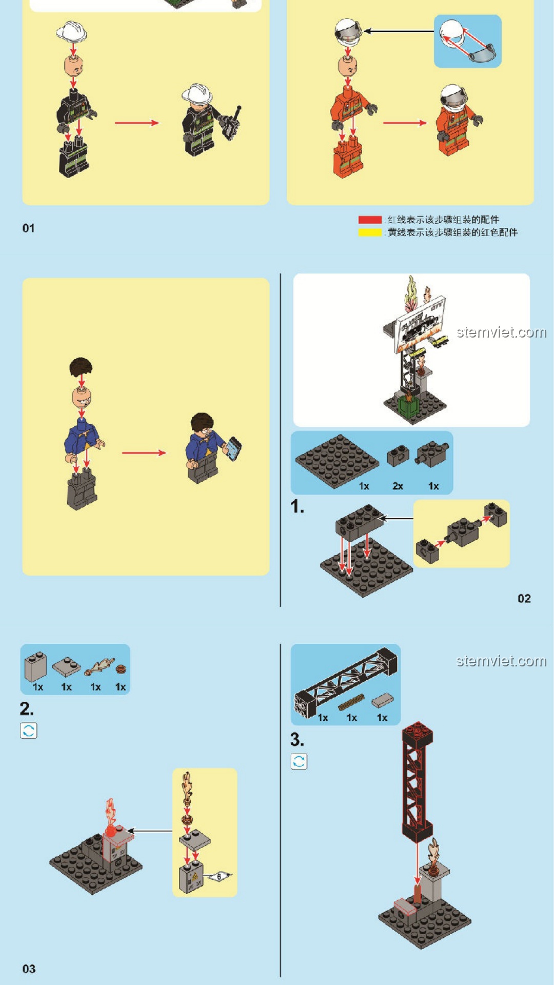 Sách Hướng Dẫn Lắp Ráp Xe Cứu Hỏa và Trực Thăng Chữa Cháy SEMBO 603035 PDF gốc chất lượng cao