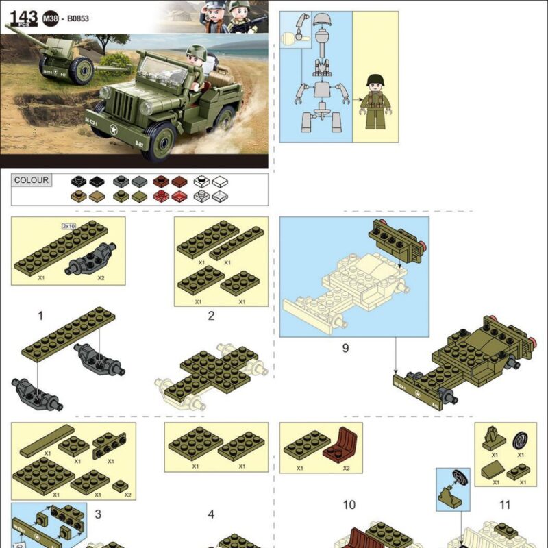 Sluban M38-B0853 Sách Hướng Dẫn Lắp Ghép Xe Jeep Chiến Tranh Thế Giới II PDF Gốc Chất Lượng Cao