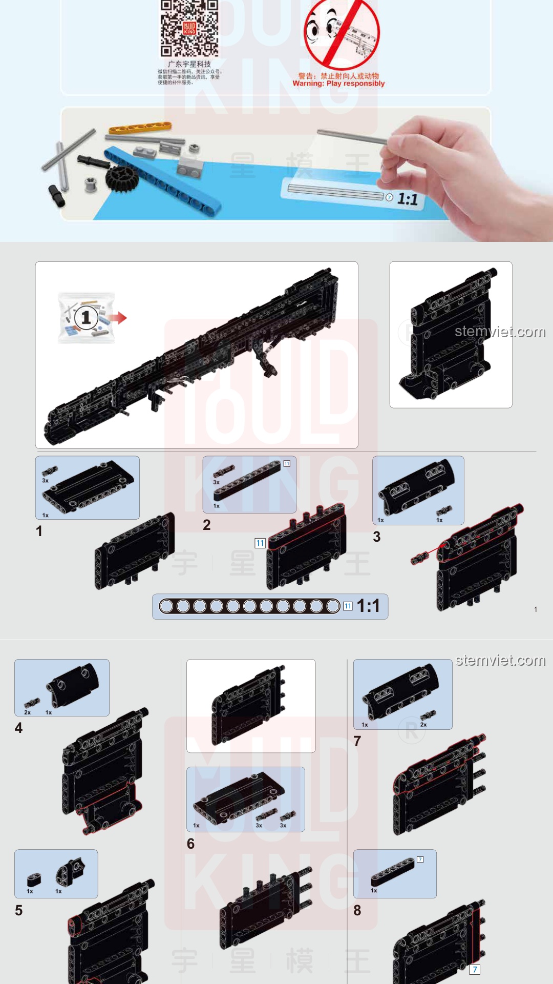 Tại Kho đồ chơi trẻ em, chúng tôi cung cấp trọn bộ giải pháp cho người đam mê đồ chơi lắp ráp. Với Sách Hướng Dẫn Lắp Ráp Mould King 14005, bạn sẽ có trải nghiệm lắp ráp mô hình súng trường tấn công QBZ95 một cách dễ dàng và chính xác nhất. File PDF gốc từ nhà sản xuất đảm bảo chất lượng in ấn sắc nét, khả năng phóng to từng chi tiết nhỏ, giúp bạn không bỏ lỡ bất kỳ bước quan trọng nào. Đây là cứu cánh cho những ai không may làm mất hoặc rách sách hướng dẫn lắp ráp Mould King 14005 Mô hình súng trường QBZ95.