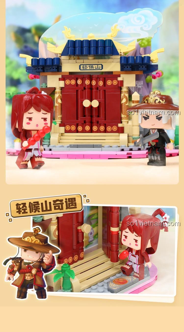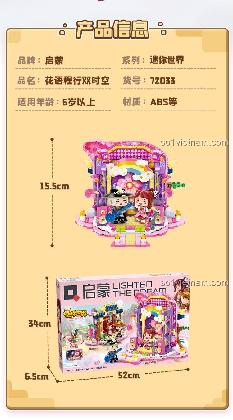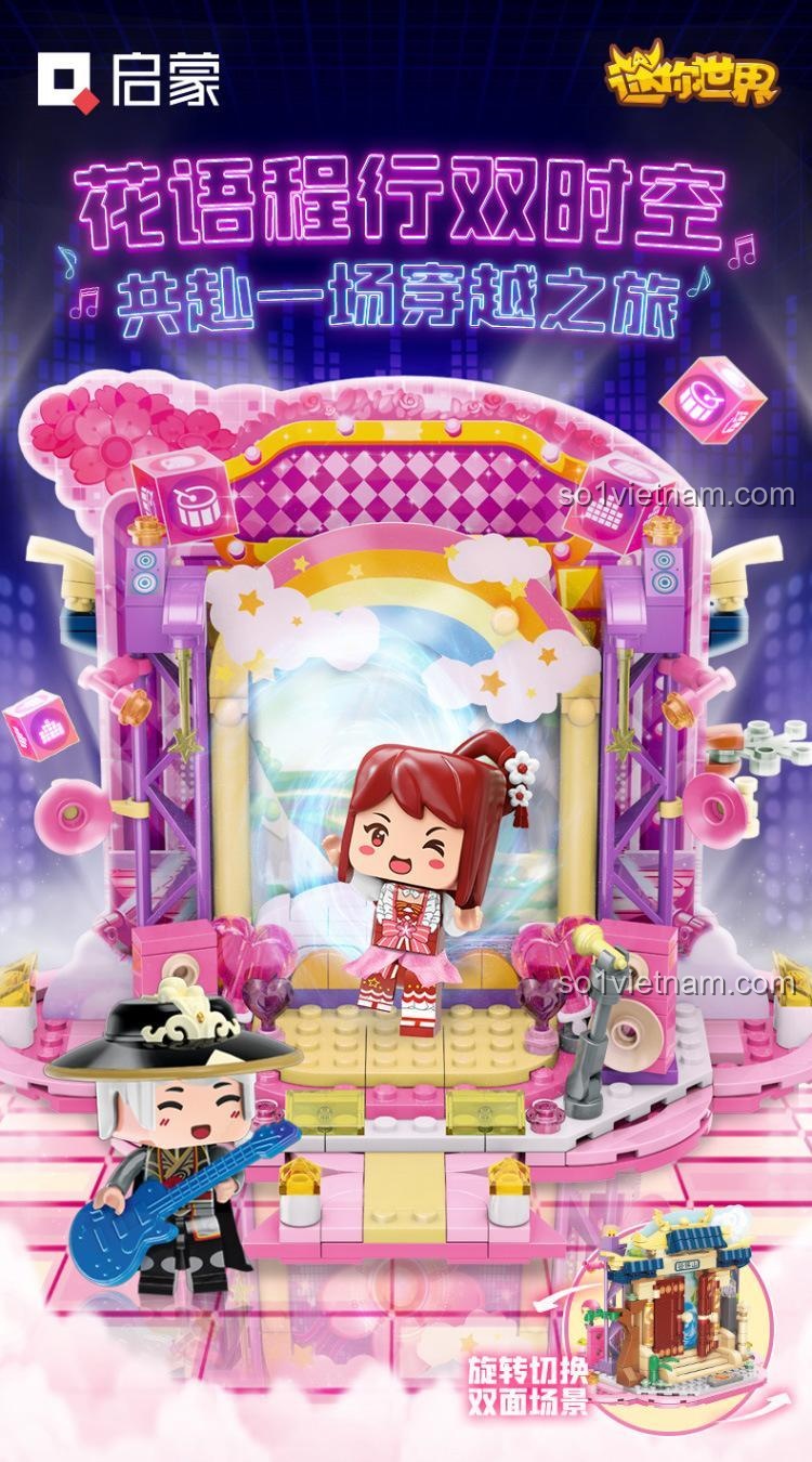 Bước vào thế giới kỳ diệu của Mini World với bộ lắp ráp QMAN 72033 – Dòng Thời Gian Kép Hoa Ngữ Trình Hành! Điểm nhấn độc đáo nhất chính là sân khấu có thể xoay 180 độ, biến hóa tức thì giữa hai không gian: một bên là núi Khinh Hầu cổ kính, một bên là sân khấu Ánh Sao rực rỡ, hiện đại. Với 446 mảnh ghép chất lượng cao, tương thích hoàn toàn LEGO®, bé gái từ 6 tuổi có thể thỏa sức sáng tạo và tái hiện những câu chuyện tình yêu xuyên không gian của Hoa Tiểu Lâu và Trình Cẩm Y. Đây là lựa chọn thay thế tiết kiệm cho LEGO®, mang lại trải nghiệm lắp ráp tuyệt vời mà không lo đau ví. Một món quà hoàn hảo, vừa giải trí vừa phát triển tư duy cho bé.