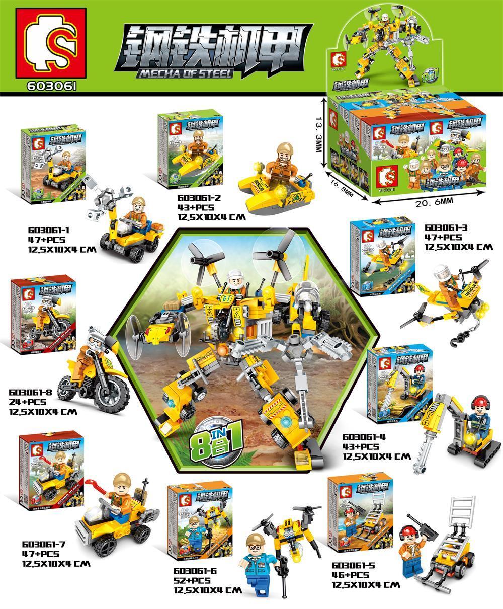 Bộ SEMBO 603061 Mecha of Steel cho phép bé lắp ráp thành 8 mô hình khác nhau từ một hộp.