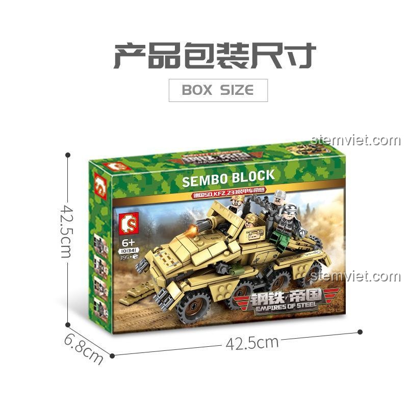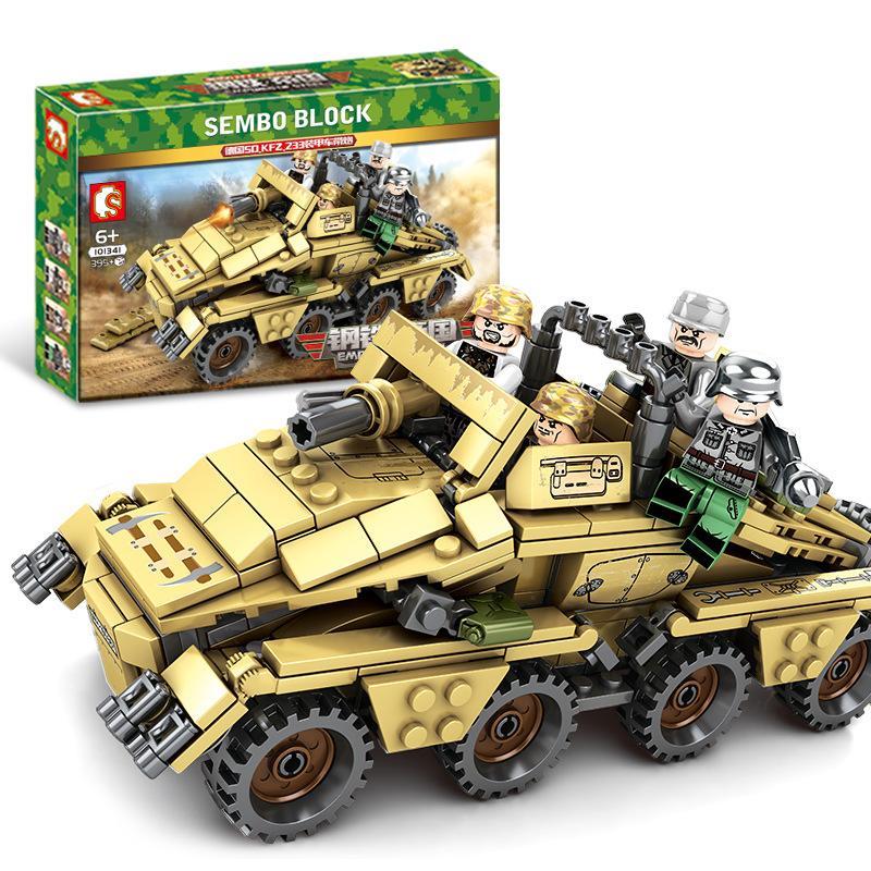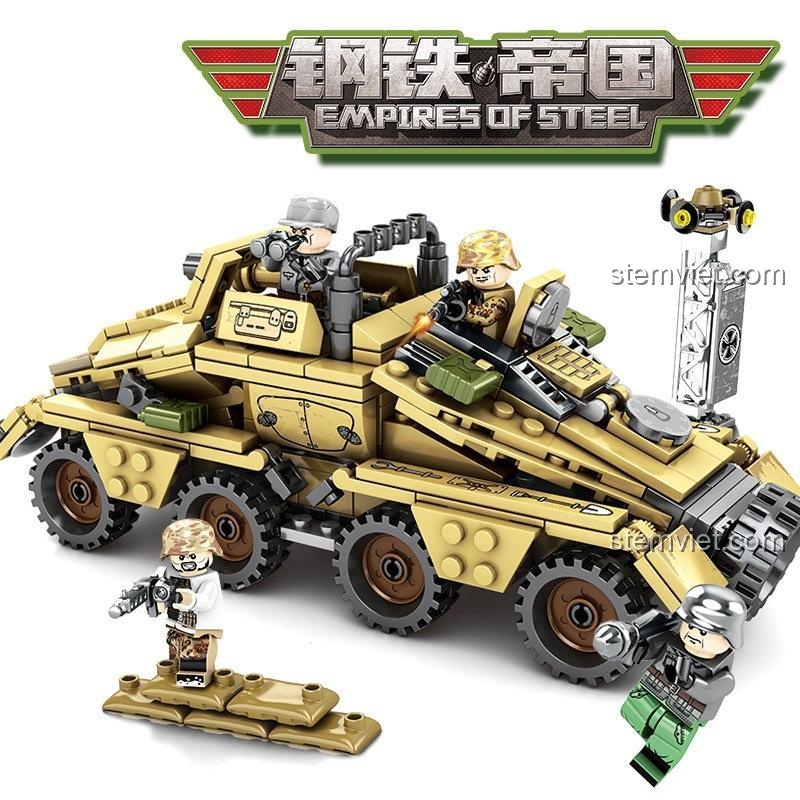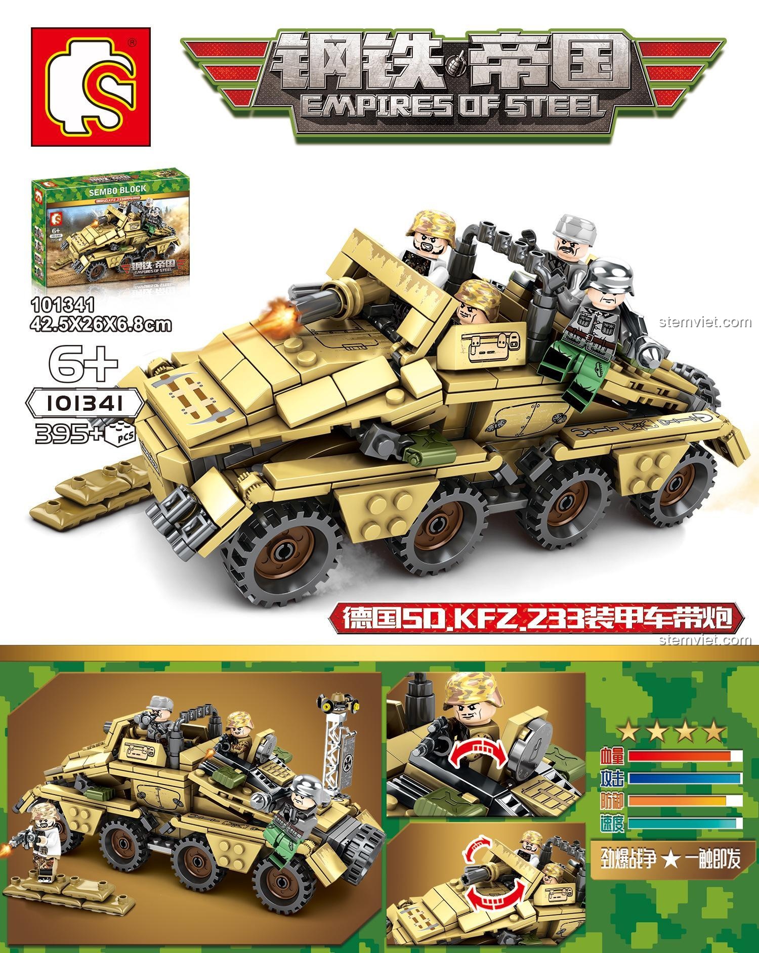 SEMBO 101341 – Bộ Lắp Ghép Xe Bọc Thép SD.KFZ.233 của Đức Với 4 Minifigure Lính Độc Đáo