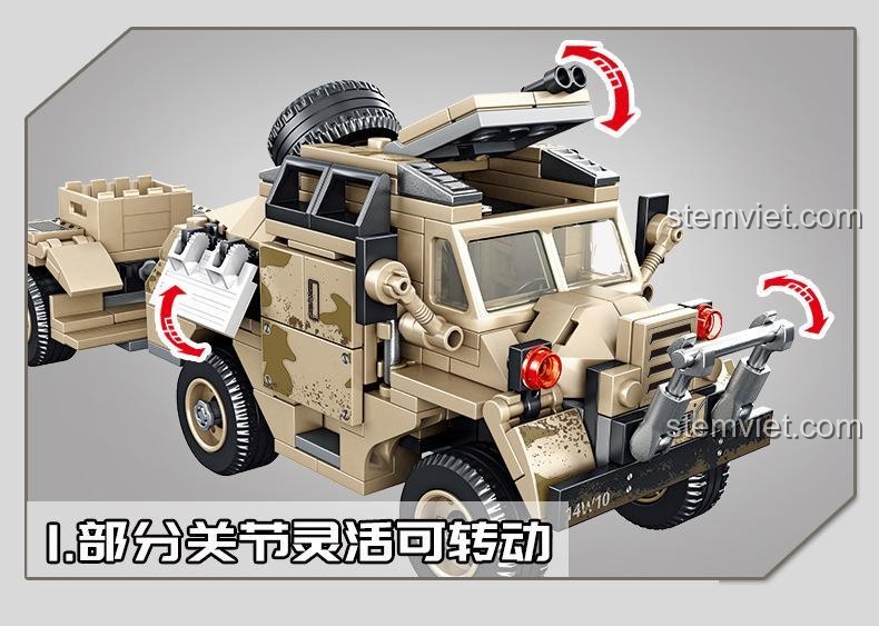 Bố mẹ có muốn cùng bé trai nhà mình thực hiện một chuyến du hành ngược thời gian, trở về với những chiến trường hào hùng của Thế Chiến II không? Với bộ lắp ráp Sembo 101361, cuộc phiêu lưu đó trở nên sống động hơn bao giờ hết. Sản phẩm này không chỉ là những khối nhựa vô tri, mà là một cánh cổng mở ra trang sử về Lựu pháo 25-pounder huyền thoại và chiếc xe kéo pháo Morris C8 “Quad” đáng tin cậy – bộ đôi vũ khí chủ lực đã làm nên tên tuổi của pháo binh Hoàng gia Anh. Từ những sa mạc nóng bỏng ở Bắc Phi đến những cánh đồng châu Âu, bộ đôi này đã có mặt ở khắp các mặt trận, trở thành biểu tượng cho sức mạnh và sự bền bỉ. Giờ đây, bé có thể tự tay tái tạo lại biểu tượng lịch sử đó, tìm hiểu về một trong những vũ khí quan trọng nhất của phe Đồng Minh, khơi dậy niềm đam mê lịch sử và lòng dũng cảm ngay tại phòng chơi của mình.
