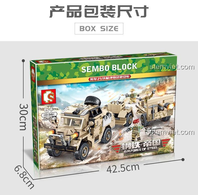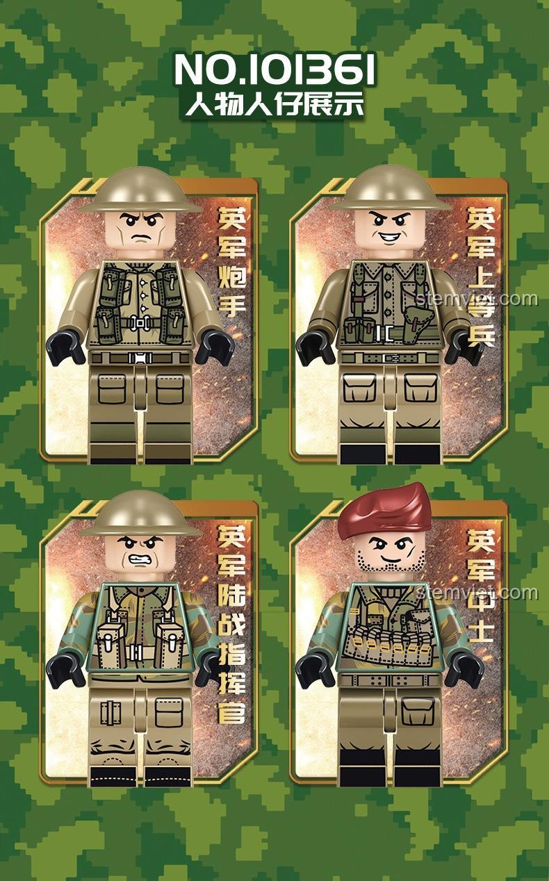 Dạ, bộ sản phẩm Sembo 101361 bao gồm tổng cộng 454 mảnh ghép và đi kèm 4 minifigures lính Anh với đầy đủ quân phục và vũ khí cá nhân.