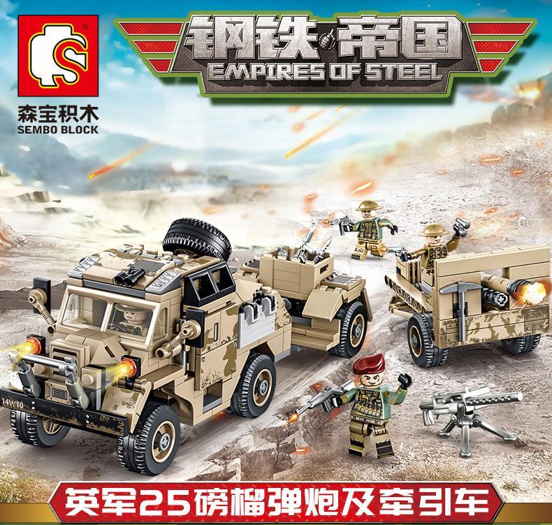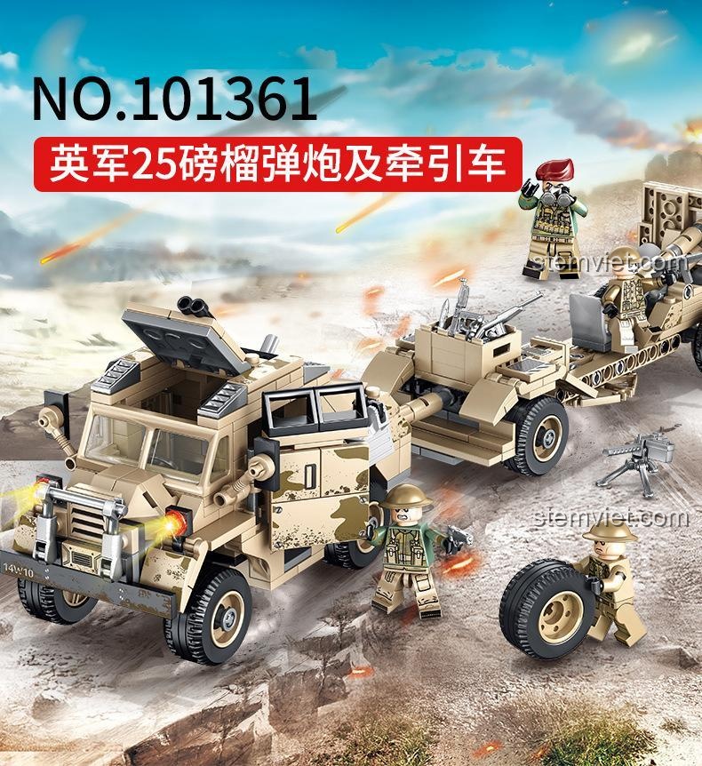 Sembo 101361 – Bộ Lắp Ráp Lựu pháo 25-pounder và Xe kéo pháo Với 4 Minifigures Lính Anh Độc Đáo