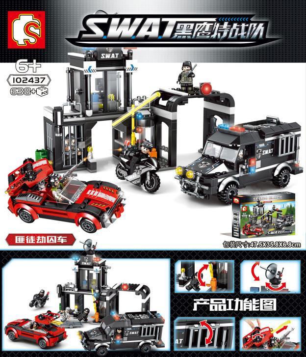 SEMBO 102437 – Bộ đồ chơi Biệt Đội Đặc Nhiệm Hắc Ưng Với Cảnh Cướp Xe Tù Kịch Tính