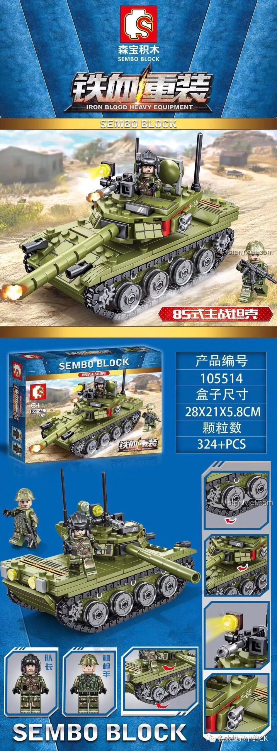 Bộ lắp ghép SEMBO 105514 tái hiện chân thực mẫu xe tăng chiến đấu chủ lực 85, một biểu tượng của sức mạnh và công nghệ quân sự. Từ tháp pháo xoay linh hoạt, nòng pháo lớn uy lực cho đến hệ thống bánh xích chi tiết, mọi bộ phận đều được thiết kế tỉ mỉ, mang đến trải nghiệm lắp ráp và trưng bày đầy ấn tượng.