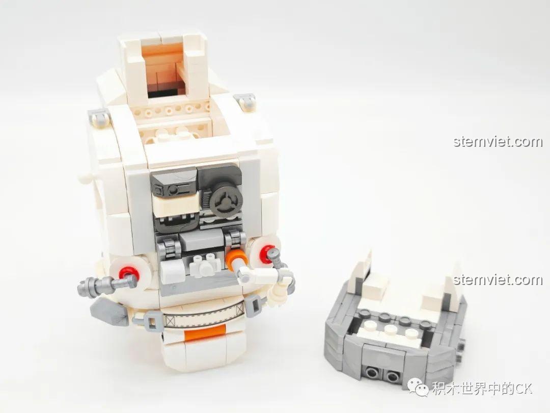 Ngay từ cái nhìn đầu tiên, Mẹ và bé sẽ bị choáng ngợp bởi độ chi tiết và sự hoành tráng của mô hình. Với chiều cao ấn tượng 25.2 cm, figure phi hành gia nổi bật với bộ giáp trắng tinh khôi, điểm xuyết các vạch đỏ và xám mạnh mẽ. Điểm nhấn đắt giá nhất chính là chiếc mũ bảo hiểm mạ vàng sáng bóng, phản chiếu hình ảnh một cách chân thực, tạo cảm giác cao cấp và sống động. Mọi chi tiết trên bộ giáp, từ bảng điều khiển trước ngực, các đường ống dẫn phức tạp, cho đến cánh tay máy đa năng và ba lô hỗ trợ sự sống phía sau, đều được tái hiện một cách tỉ mỉ qua 1189 mảnh ghép. Mô hình được đặt trên một chiếc đế trưng bày vững chãi, mô phỏng bề mặt băng giá của một hành tinh xa xôi, làm tăng thêm vẻ đẹp và sự hùng vĩ cho tổng thể. Đây thực sự là một tác phẩm nghệ thuật, một vật phẩm trưng bày không thể thiếu trong bộ sưu tập của các fan hâm mộ khoa học viễn tưởng.