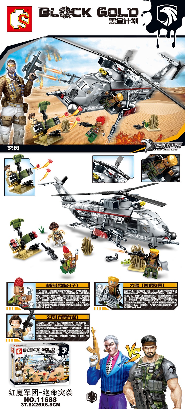 Sembo 11688: Bộ lắp ráp Trực Thăng Chiến Đấu Black Gold (189 chi tiết) – Tấn Công Chớp Nhoáng