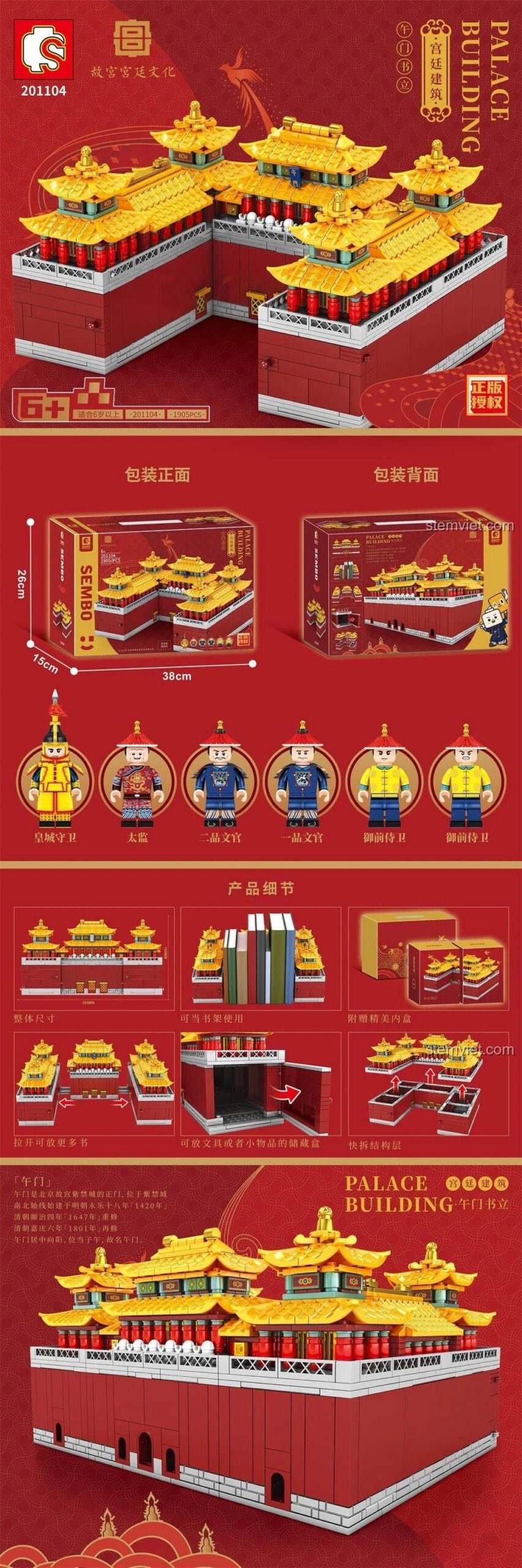 Mẹ có con trai 6 tuổi đang tìm kiếm một món đồ chơi không chỉ để giải trí mà còn mang đậm giá trị văn hóa và giáo dục? Hãy cùng bé bước vào một cuộc phiêu lưu kỳ thú, ngược dòng lịch sử để khám phá sự uy nghiêm của Tử Cấm Thành ngay tại nhà. Bộ đồ chơi mô hình Chặn Sách Ngọ Môn Tử Cấm Thành (SEMBO 201104) không chỉ là một thử thách lắp ráp hấp dẫn mà còn là một cánh cửa mở ra thế giới kiến trúc và lịch sử Trung Hoa cổ đại. Được xây dựng lần đầu vào năm 1420 dưới triều đại nhà Minh, Ngọ Môn không chỉ là cổng chính mà còn là biểu tượng quyền lực của hoàng cung. Việc tái hiện lại công trình vĩ đại này sẽ khơi dậy trong bé niềm đam mê tìm tòi, học hỏi và trân trọng những giá trị lịch sử, biến giờ chơi thành những bài học sống động và đầy cảm hứng.
