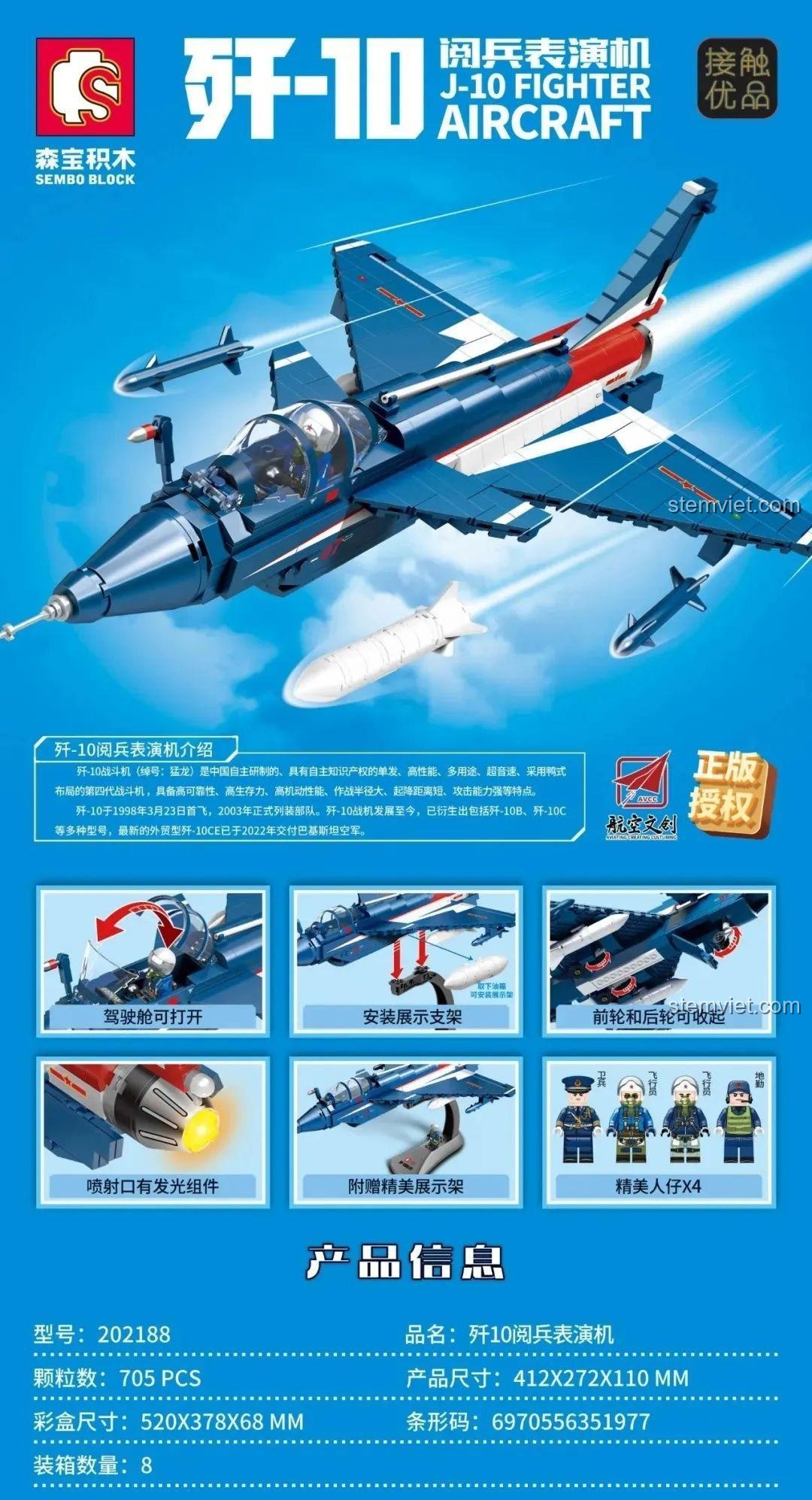 Chào mừng các bậc phụ huynh và đặc biệt là các bé trai yêu thích hàng không! Hôm nay, chúng ta sẽ cùng nhau khám phá một kiệt tác đồ chơi mô hình: bộ lắp ghép SEMBO 202188 Máy Bay Biểu Diễn J-10. Đây không chỉ là một món đồ chơi thông thường, mà còn là cánh cửa mở ra thế giới của những chiến đấu cơ hiện đại, nơi bé có thể tự tay xây dựng và tìm hiểu về một trong những biểu tượng của không lực hiện đại.