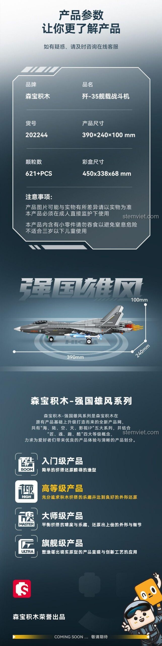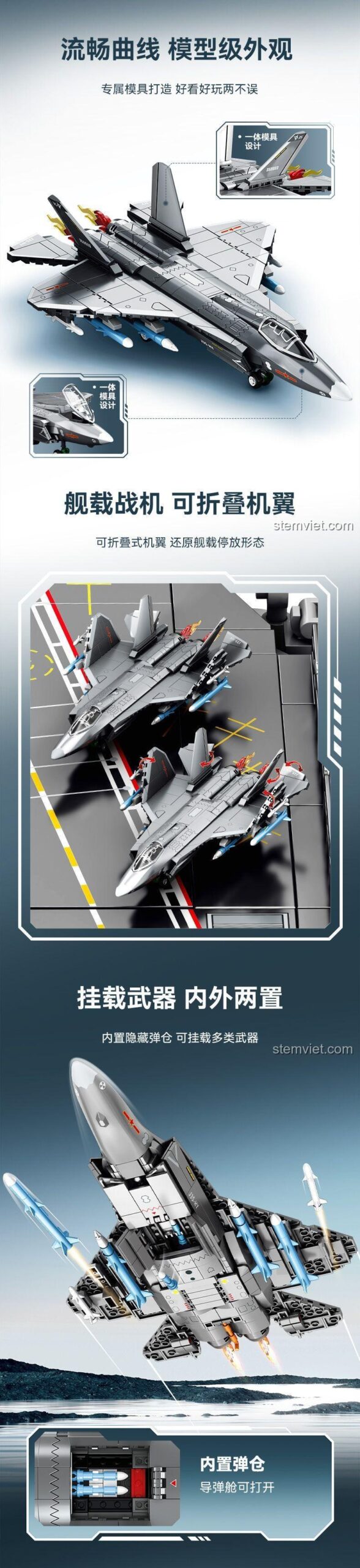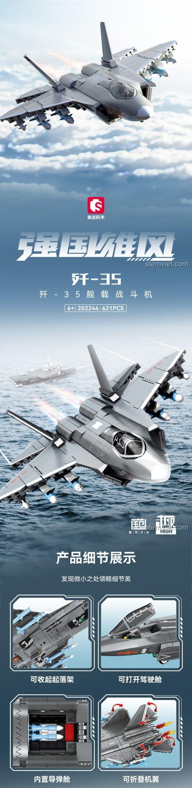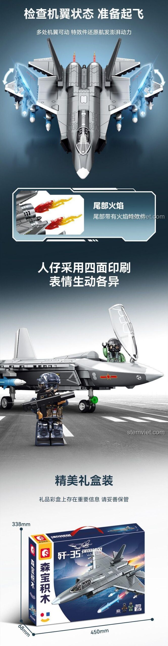 Mẹ có biết không, chiếc máy bay mà con trai mình sắp sở hữu không chỉ là một món đồ chơi thông thường? Đó là phiên bản thu nhỏ của Máy bay chiến đấu J-35, hay còn gọi là Thẩm Dương FC-31, một trong những tiêm kích tàng hình thế hệ thứ năm hiện đại nhất thế giới! Đây là niềm tự hào của công nghệ hàng không quân sự, được thiết kế đặc biệt để cất và hạ cánh trên những tàu sân bay khổng lồ. Với bộ lắp ráp Sembo 202244, Mẹ không chỉ tặng con một món đồ chơi, mà còn trao cho con cơ hội được chạm tay vào một biểu tượng của sức mạnh và công nghệ, khơi dậy trong con niềm đam mê khám phá khoa học và ước mơ bay cao, bay xa. Hãy cùng con bắt đầu cuộc phiêu lưu, tái hiện những nhiệm vụ trên không đầy kịch tính và tìm hiểu về thế giới máy bay chiến đấu đầy hấp dẫn nhé!