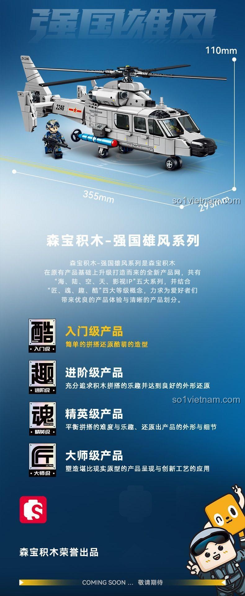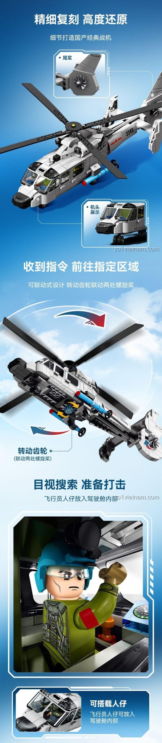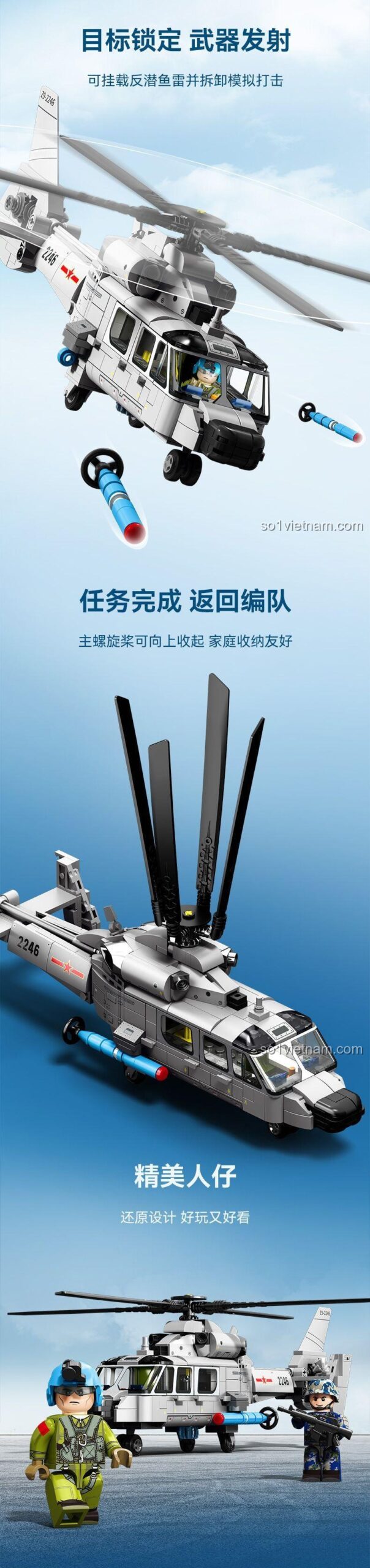 Chào bố mẹ và các bé yêu thích thế giới quân sự! Hôm nay, Kho đồ chơi trẻ em xin giới thiệu đến các bạn một siêu phẩm mới toanh: Bộ lắp ghép Trực thăng Hải quân Z-9 SEMBO 202246. Đây không chỉ là một món đồ chơi, mà còn là cánh cửa mở ra thế giới phiêu lưu trên không, nơi trí tưởng tượng và sự sáng tạo của bé được bay cao!