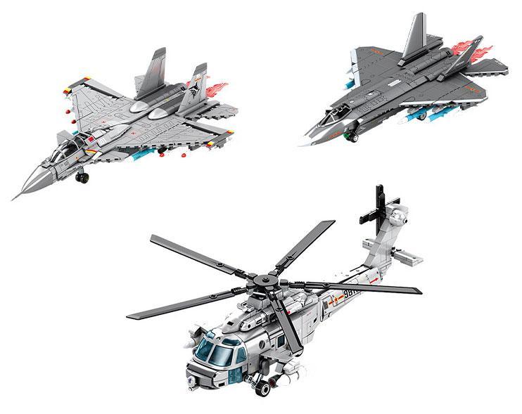 Lắp Ráp 3 Kiểu Máy Bay Chiến Đấu Hải Quân Uy Phong Bầu Trời Cùng SEMBO 202257 (1814 Mảnh Ghép)!