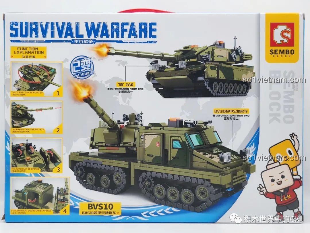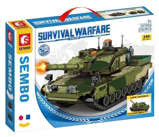 Chào mừng các nhà chỉ huy tương lai đến với thế giới quân sự đầy kịch tính cùng bộ lắp ghép SEMBO 207003 “Survival Warfare”! Bộ sản phẩm độc đáo này mang đến cho bạn cơ hội tự tay xây dựng hai biểu tượng sức mạnh trên chiến trường: Xe tăng chiến đấu chủ lực Leopard 2A6 của Đức và xe bọc thép đa dụng BVS10 của Thụy Điển. Với 679 chi tiết được chế tác tinh xảo, SEMBO 207003 không chỉ là một món đồ chơi, mà còn là một trải nghiệm nhập vai sống động, khơi dậy niềm đam mê khám phá và tư duy sáng tạo cho bé.