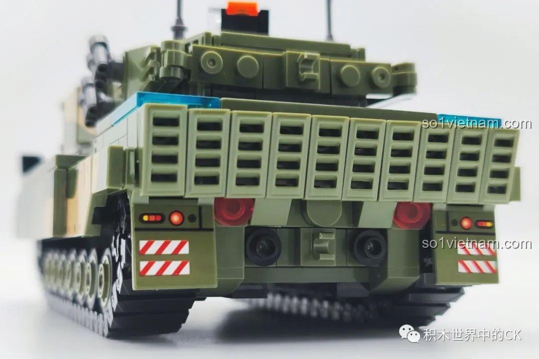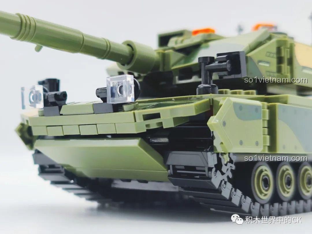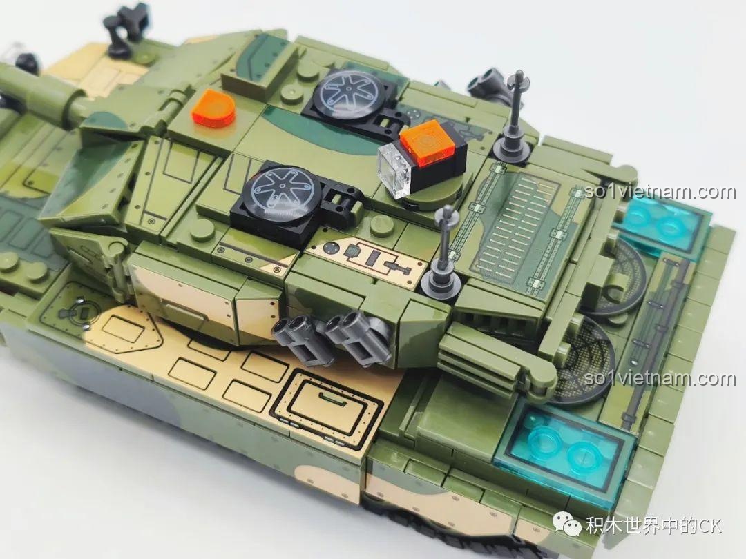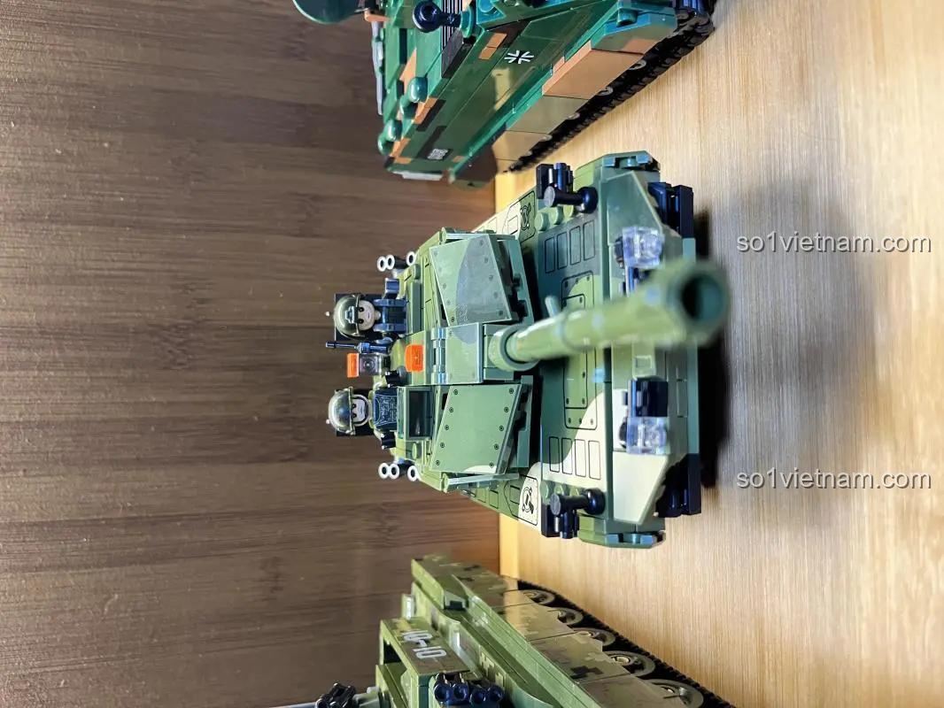 SEMBO luôn nổi tiếng với sự chú trọng đến từng chi tiết, và bộ 207003 không phải là ngoại lệ. Mô hình xe tăng Leopard 2A6 được tái hiện một cách chân thực với lớp sơn ngụy trang màu xanh lá, nâu và be đặc trưng, tạo cảm giác mạnh mẽ và uy lực. Các chi tiết như nòng pháo dài, hệ thống bánh xích, tháp pháo xoay, các phụ kiện đi kèm như súng máy phụ, đèn tín hiệu đều được mô phỏng tỉ mỉ, mang đến một sản phẩm hoàn chỉnh và ấn tượng. Kích thước mô hình sau khi lắp ráp là 25 x 9.6 x 8.9 cm, vừa vặn để trưng bày trên bàn học hay kệ sách.