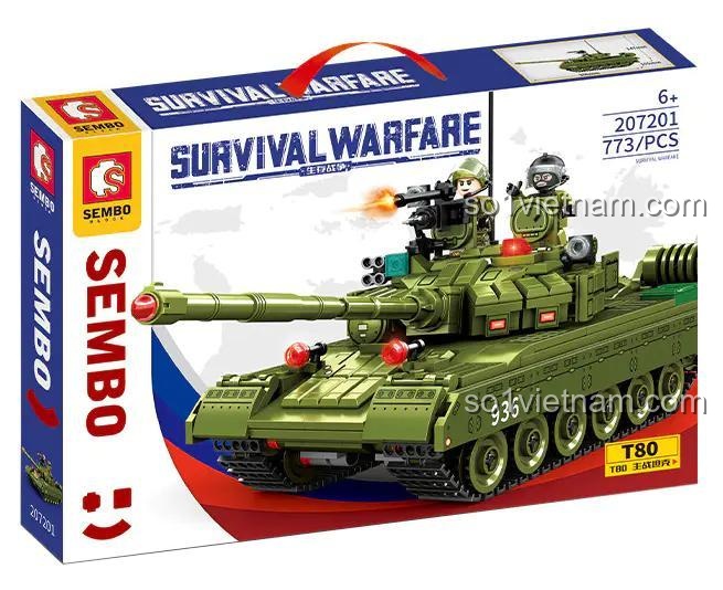 Chào mừng các bậc phụ huynh và bé trai 6 tuổi đến với thế giới đầy kịch tính của bộ lắp ráp Xe Tăng T80 SEMBO 207201! Mô hình này không chỉ là một món đồ chơi, mà còn là cánh cửa mở ra câu chuyện về một trong những cỗ máy chiến tranh huyền thoại nhất lịch sử. Xe tăng chủ lực T-80 được phát triển tại Liên Xô vào những năm 1970, là biểu tượng của sức mạnh quân sự và công nghệ tiên tiến thời bấy giờ, nổi bật với động cơ turbine khí mạnh mẽ và hỏa lực vượt trội. Với chủ đề “Chiến Tranh Sinh Tồn” (Survival Warfare), bộ đồ chơi này tái hiện chân thực những trận chiến giả tưởng, nơi bé có thể hóa thân thành chỉ huy tài ba, dẫn dắt đội quân của mình vượt qua mọi thử thách. Đây là cơ hội tuyệt vời để bé khám phá lịch sử, đồng thời phát triển trí tưởng tượng phong phú trong những cuộc phiêu lưu đầy cam go.