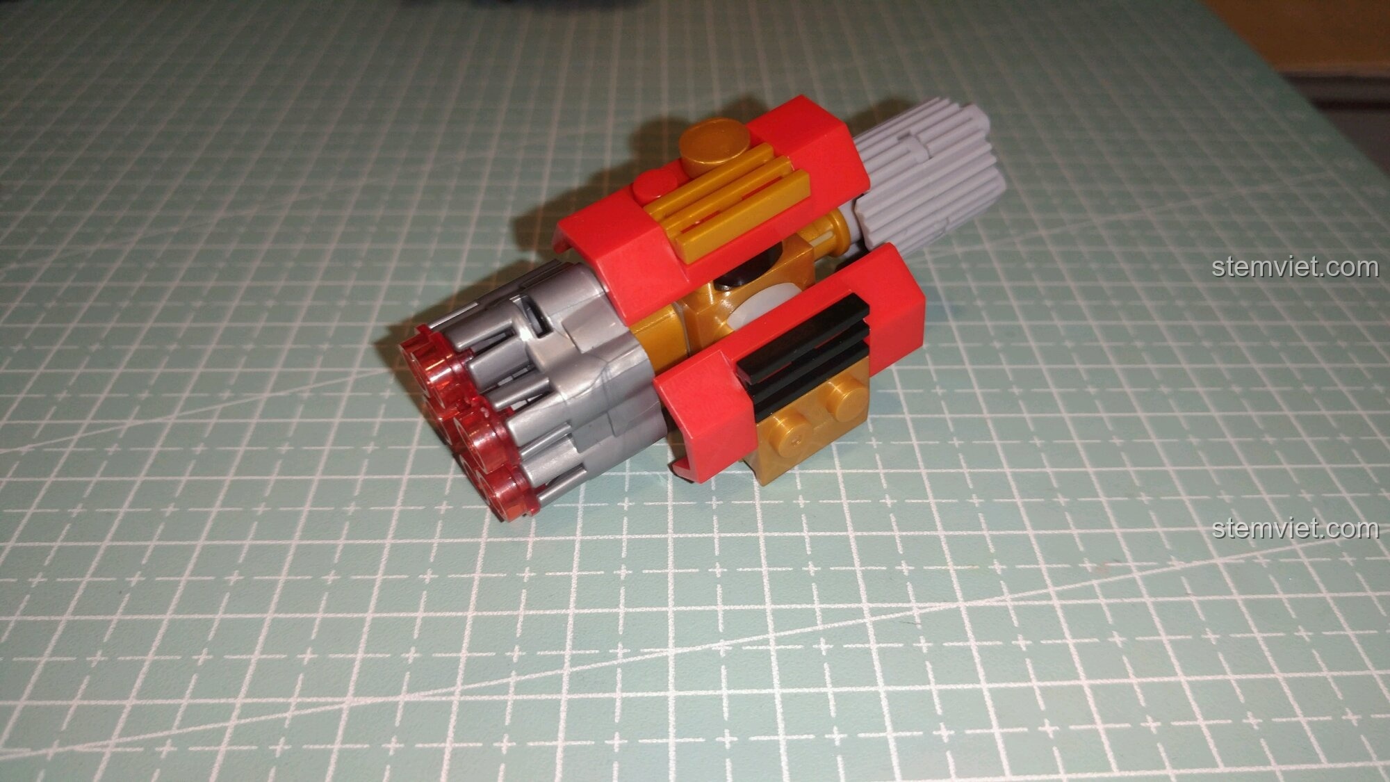 Có, và rất ngầu là đằng khác! Mỗi khẩu pháo được trang bị một cơ chế bắn 6 viên đạn nhựa (stud shooter). Bé chỉ cần xoay trục phía sau là có thể khai hỏa, mang lại những giờ phút vui chơi hành động đầy phấn khích.