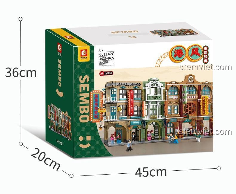 Bạn có phải là một người đam mê kiến trúc, một tâm hồn hoài cổ luôn say đắm vẻ đẹp của những khu phố xưa cũ? Hay bạn đang tìm kiếm một thử thách lắp ráp đỉnh cao, một tác phẩm nghệ thuật thực sự để trưng bày? Hãy cùng chúng tôi ngược dòng thời gian, trở về với không khí sầm uất, náo nhiệt của những con phố Hồng Kông xưa với bộ lắp ráp Sembo 601142C Nhà Cổ Kiểu Hồng Kông. Đây không chỉ là một món đồ chơi, mà là cả một công trình kiến trúc thu nhỏ, một câu chuyện văn hóa được kể lại qua từng mảnh ghép.
