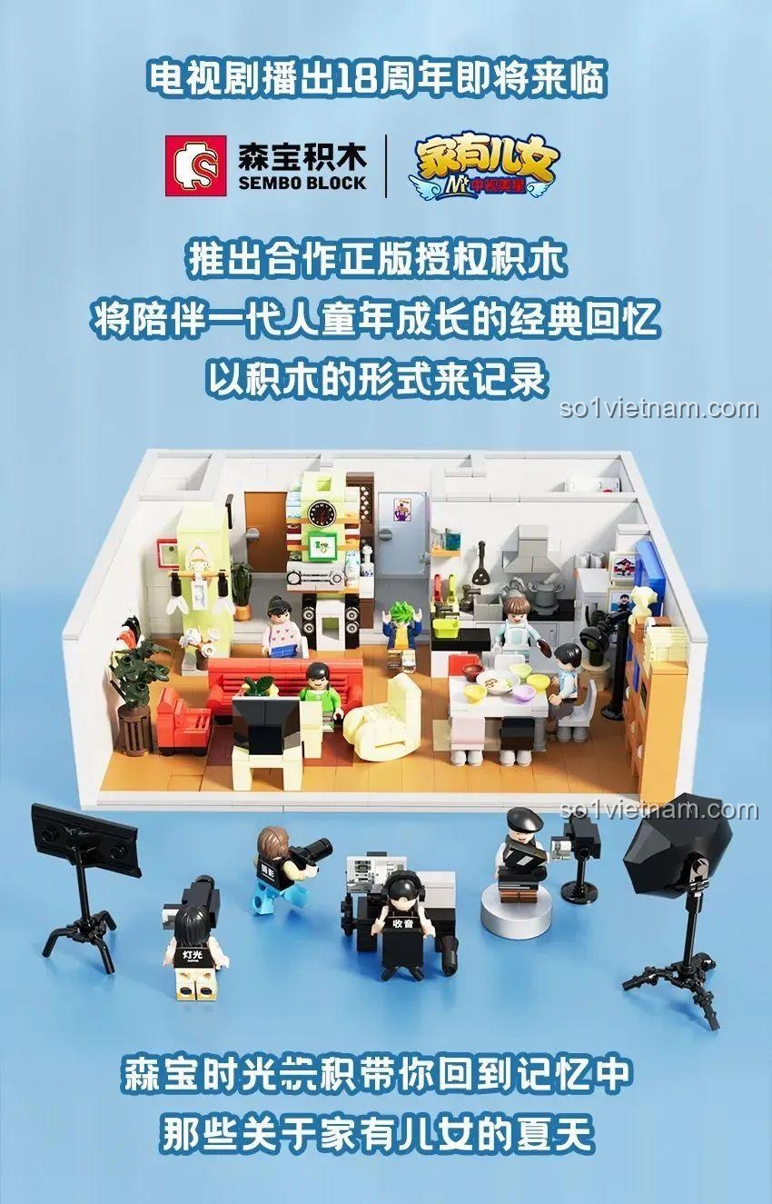 Bạn có còn nhớ những tràng cười sảng khoái, những bài học ý nghĩa từ bộ phim sitcom quốc dân “Gia Hữu Nhi Nữ” (家有儿女) không? Bộ phim đã trở thành một phần không thể thiếu trong ký ức tuổi thơ của hàng triệu khán giả, đặc biệt là thế hệ 8x, 9x tại Trung Quốc và nhiều nước châu Á. Ra mắt lần đầu vào năm 2004, “Gia Hữu Nhi Nữ” đã khắc họa một cách chân thực và hài hước cuộc sống của một gia đình tái hợp, với những tình huống dở khóc dở cười nhưng luôn tràn đầy tình yêu thương. Để kỷ niệm 18 năm ngày bộ phim lên sóng, hãng SEMBO đã cho ra đời bộ lắp ghép SEMBO 601310 Gia Hữu Nhi Nữ – Phiên Bản Kỷ Niệm 18 Năm, một set đồ chơi SEMBO độc đáo, giúp bạn tái hiện lại không gian sống động của gia đình Hạ Tuyết, Lưu Tinh, Hạ Vũ ngay tại nhà. Đây không chỉ là một bộ đồ chơi mô hình Phim trường Gia Hữu Nhi Nữ, mà còn là một cỗ máy thời gian, đưa Cả Con trai và Con gái 6 tuổi trở về với những kỷ niệm đẹp đẽ, những giá trị gia đình ấm áp đã làm nên tên tuổi của bộ phim. Chắc chắn, đây sẽ là món quà tuyệt vời mà Mẹ có Cả Con trai và Con gái 6 tuổi không thể bỏ qua để cùng con khám phá và ôn lại những khoảnh khắc đáng nhớ.
