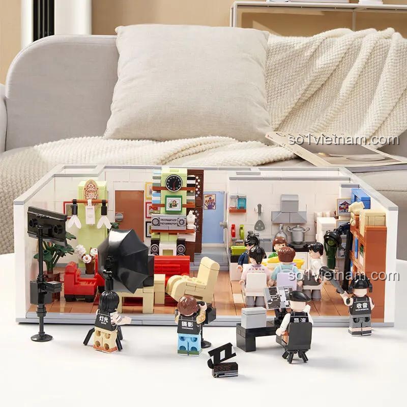 Bộ lắp ghép SEMBO 601310 Gia Hữu Nhi Nữ gây ấn tượng mạnh mẽ với thiết kế tỉ mỉ, tái hiện chân thực từng góc nhỏ của căn hộ trong phim. Với 1583 mảnh ghép, mô hình này không chỉ là một set đồ chơi SEMBO mà còn là một tác phẩm nghệ thuật thu nhỏ. Màu sắc chủ đạo của mô hình là sự kết hợp hài hòa giữa Trắng, Xám, Đỏ, Nâu, Xanh lá và Xanh dương, tạo nên một không gian sống động và quen thuộc. Từ bộ sofa đỏ đặc trưng ở phòng khách, chiếc TV “đít bự” cổ điển, tủ sách đầy ắp kỷ niệm, cho đến khu vực bếp ăn ấm cúng và phòng tắm tiện nghi, mọi chi tiết đều được chăm chút để mang lại cảm giác như bước ra từ màn ảnh. Đặc biệt, bộ đồ chơi mô hình Phim trường Gia Hữu Nhi Nữ này còn đi kèm 9 minifigures, bao gồm các nhân vật chính Lưu Mai, Hạ Đông Hải, Hạ Tuyết, Lưu Tinh, Hạ Vũ và cả đoàn làm phim (Đạo diễn, Quay phim, Thu âm, Ánh sáng) với đầy đủ phụ kiện như máy quay, đèn chiếu, micro, ghế đạo diễn và bảng clapboard. Điều này giúp Cả Con trai và Con gái 6 tuổi có thể dễ dàng nhập vai, sáng tạo nên những câu chuyện mới hoặc tái hiện lại các cảnh quay yêu thích. Mỗi mảnh ghép, mỗi chi tiết đều góp phần tạo nên một bức tranh hoàn chỉnh về căn hộ Gia Hữu Nhi Nữ 601310, một không gian đầy ắp tiếng cười và tình yêu thương.