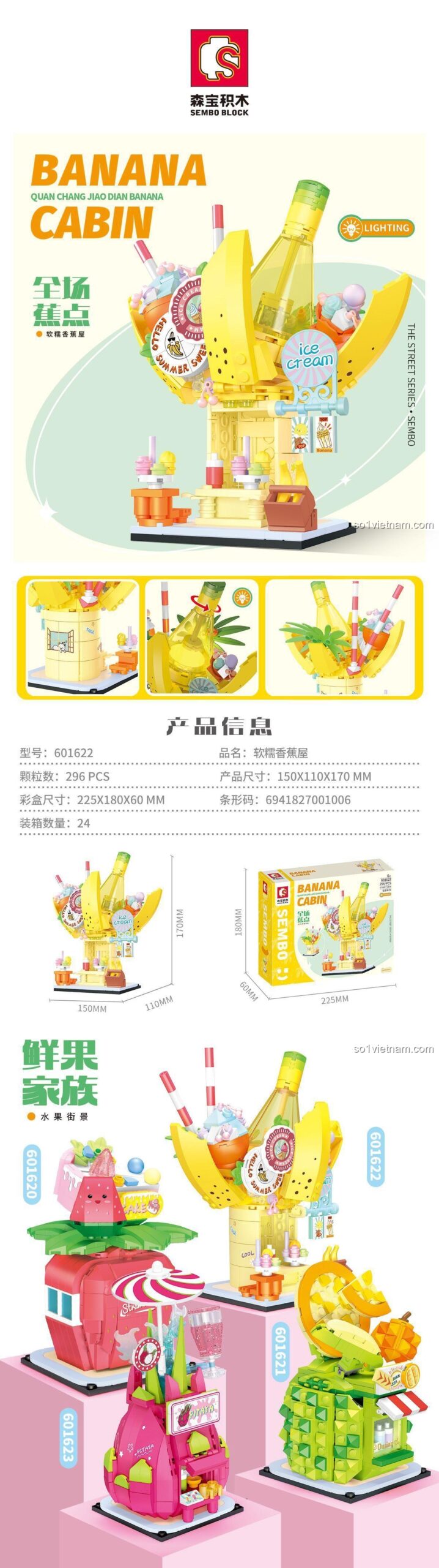 SEMBO 601622: Nhà Chuối Ngọt Ngào – Bộ Lắp Ghép 296 Mảnh